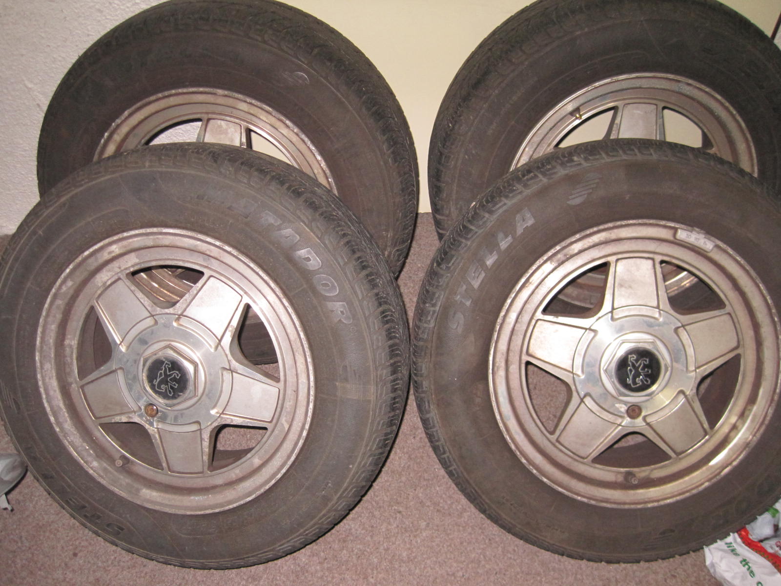 Nabízím 4 x litá kola 6J - 13 H2 ET 22 vč. pneumatik Matador Stela MP 15 165/70 -13 79T, vzorek 2 x 5,6 mm, 2 x 5,2 mm. Byly používané na P 205. Cena za vše 1.600,- Kč. Info na tel. 602 280 288, místo prodeje Praha.