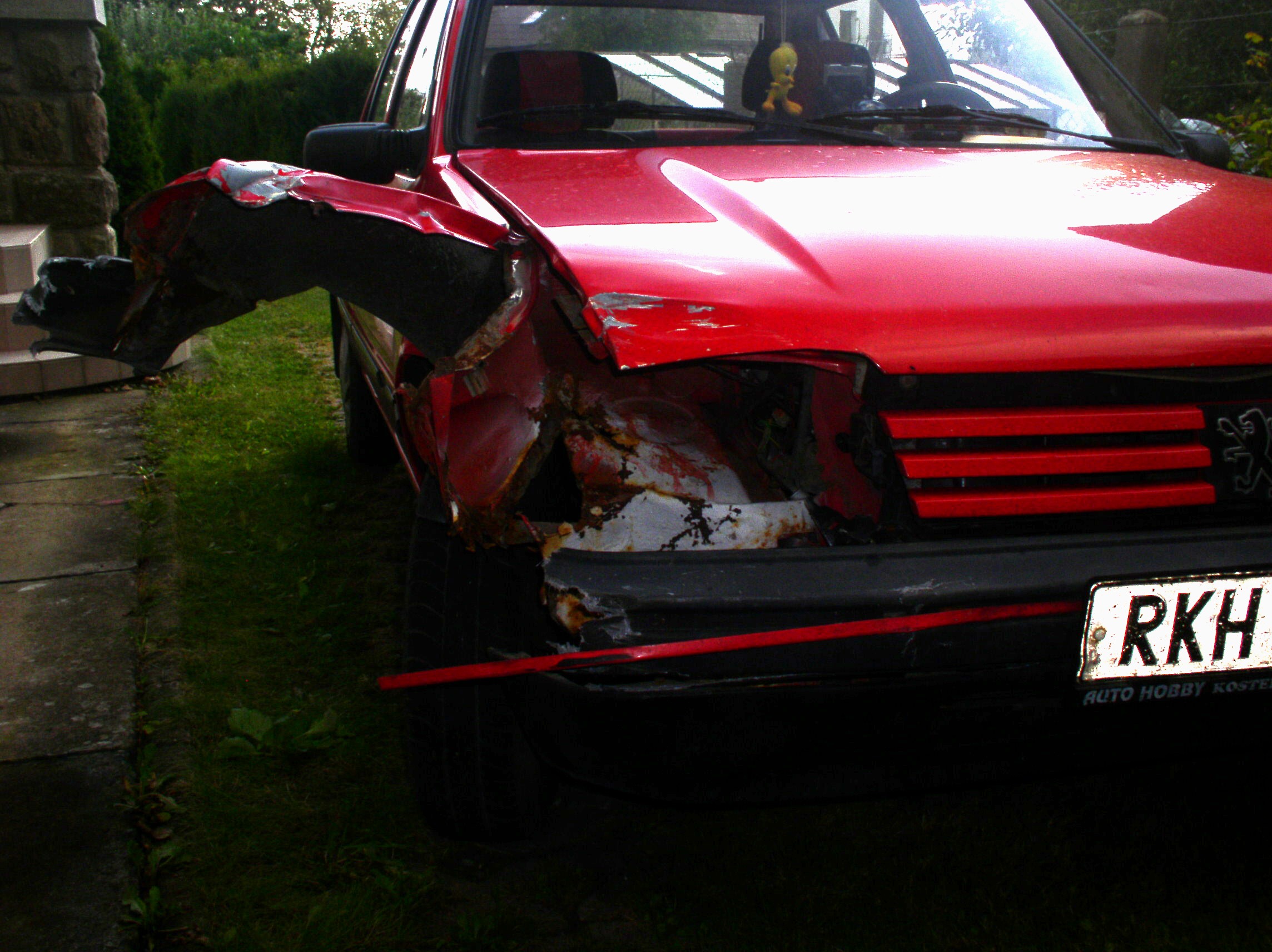 Narodil jsem se koncem roku 1990 pro jednoho nemce jako 1.1 Look. Po deseti letech jsem byl prodan do cech kde jsem jezdil 5let a defakto bez servisu a oprav a proto jsem dopadl jak jsem dopadl nez jsem nasel nekoho kdo se postaral aby bylo lip. 2005 jsem byl definitivne prodan a konecne dan dohromady, lak jsem mel temer bily a mel jsem hodne bolistek. ... Takze po kopi jsem musel udelat par drobnych nutnosti jako --> rozlesteni z bily barvy na cervenou a potom klasika co se musela udelat, cepy, filtry, bouhuzel i poloosy, brzd. kotouce, oblozeni, predni i zadni, vymena silentboku na motoru vcetne stabilizatoru. ... Fotky z te doby nejak nemam, asi jsem nefotil nebo nevim kam se podely. Takze prvni prilozim jen jednu kde jsem byl sestrelen tak nestastne, ze transit zadnim podbehem rozparal pravy blatnik jak konzervu.