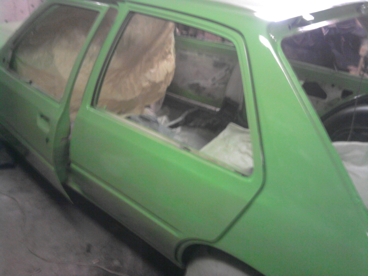 Dobry den představuji moji 205. 5 dviřko s motorem 1.8 D,rok vyroby 1983,najeto o kolo 260 000 km. Auto použival mamčin přitel ,jako auto do prace jezdil sním asi 3-4 roky potom skončila technicka a auto zustalo stat asi 7 měsicu v garaži. potom sem se rozhodl že jej dam zase do hromady a necham si ho ja.Cele auto sem odstrojil.Jako prvni přišla na řadu 3x misty lehce prohnila podlaha.dalši bylo častně zhnile předni čelo pod světly ktere sem nekupoval nove ale sve pomoci opravil.Dalši na řadu přišel levy podbeh ktery sem sundal i s blatníkem.
