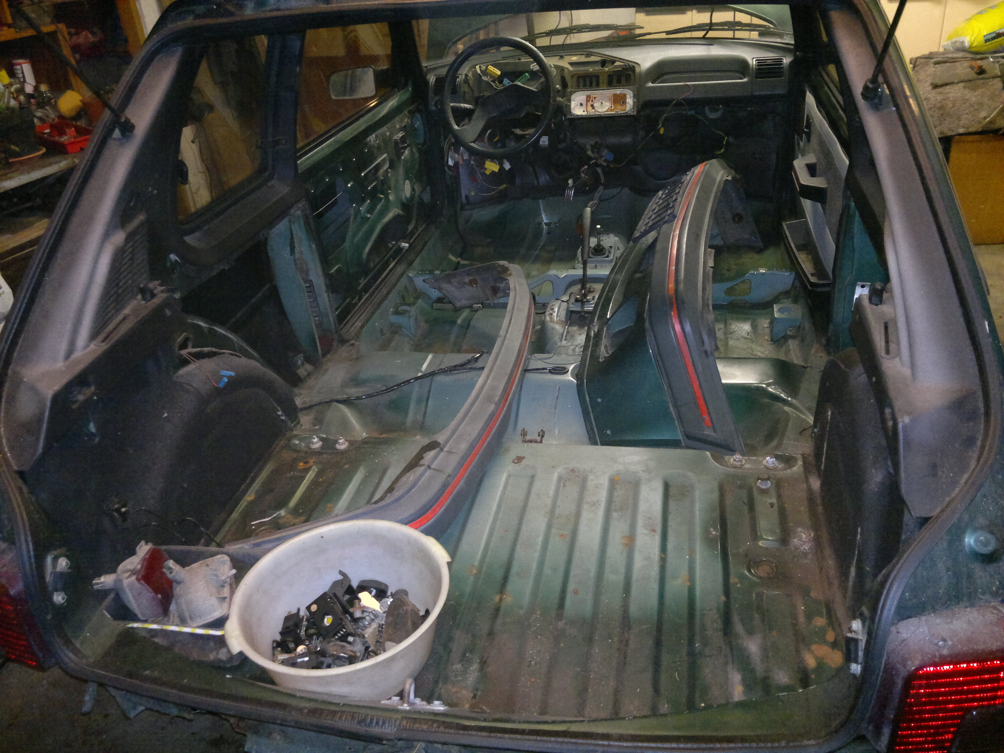 a kastle je skoro odstrojená. Teď se bude brousit, svářet a natírat. A třeba z toho bude na jaře i auto. Dobrý je, že kastle nebyla nějak zvlášť bouraná, takže až na pár klasických míst je zdravá