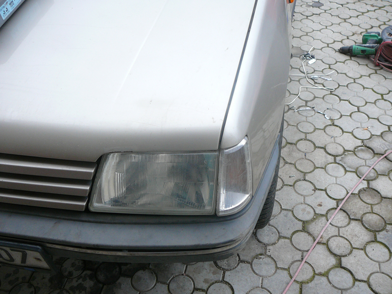 Dále byly na řadě přední světla,ty starý svítily docela na prd,no jedny se mě válely z TDčka i s bílýma blinkrama tak se šlo předělávat výsledek oproti oranžovým blinkrům je super