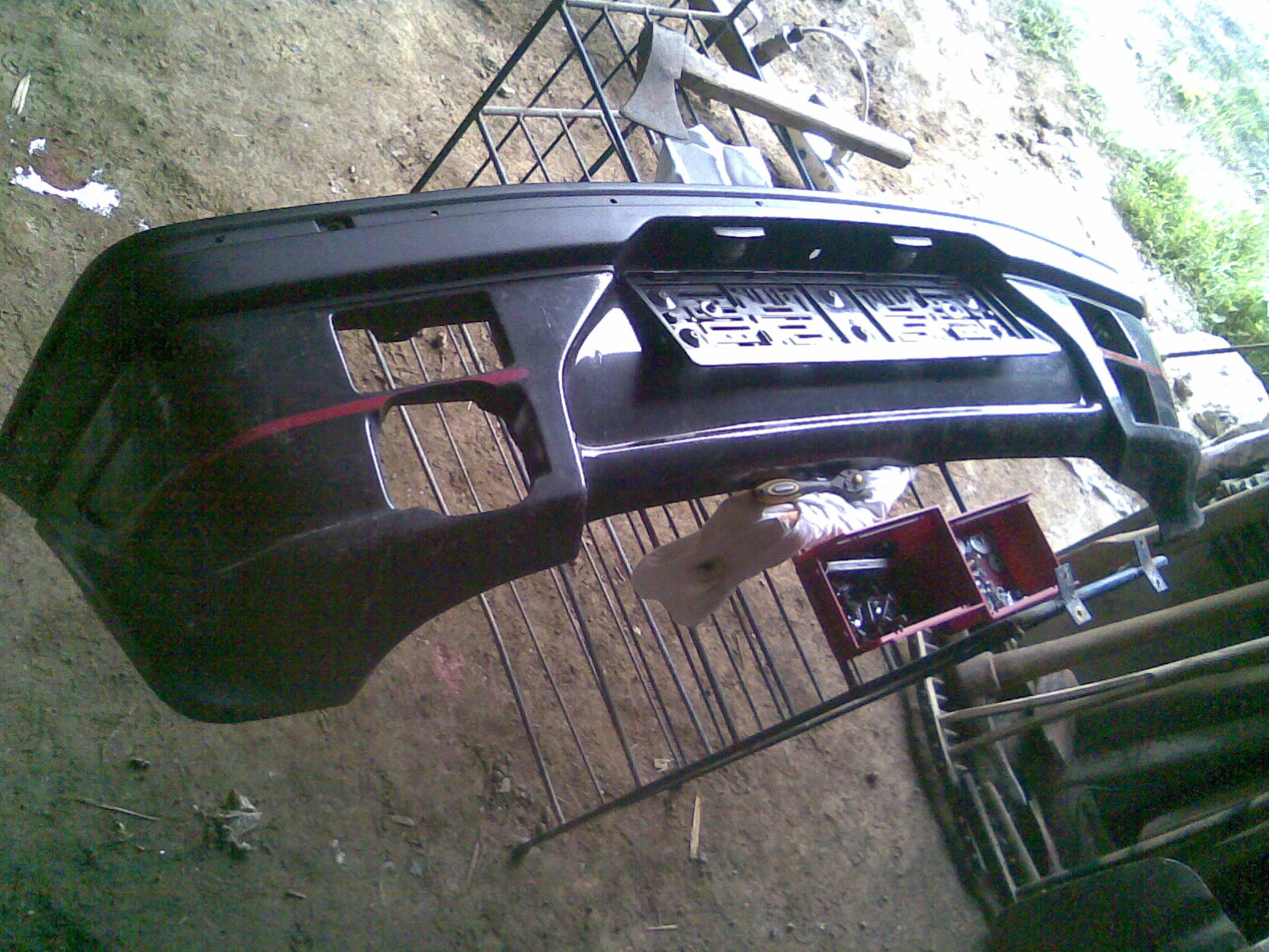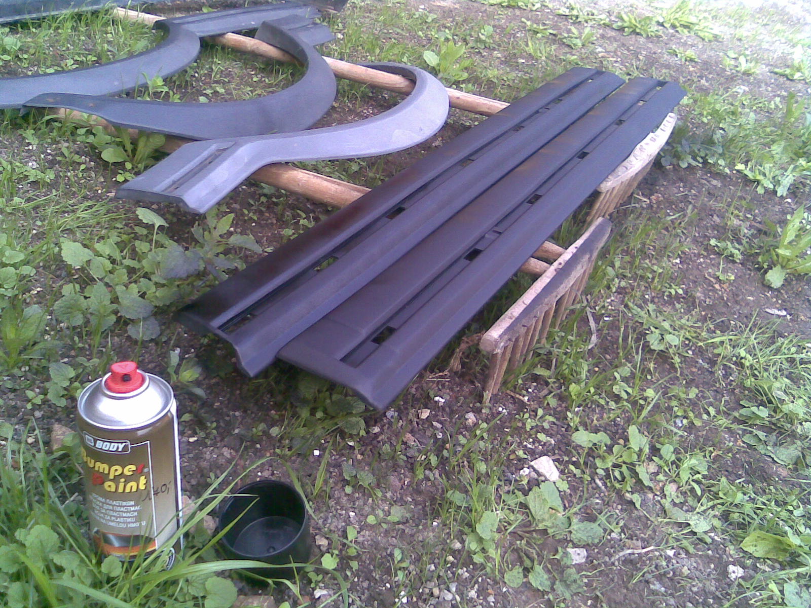 Pak se smontovali se spoilery a nasadilo se to na auto jeste chybí levý bok, tam se čeká na novej lak zatím je to vzitý kitem a plničem a vzádu se strhla ta né pro toto auto zadní krytka DIMMA.A trochu na odech se vyčistli speedline.