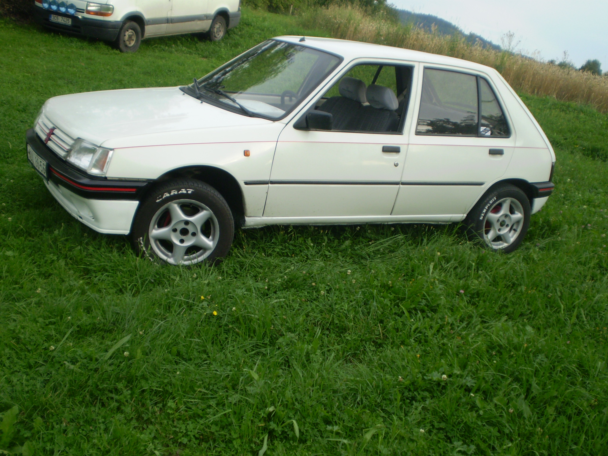 Takze kde zacit :-) predstavuji tady svoji 205ku je to 1.8 GRD rok vyroby 1983 najeto 196 680 pred 4 roky velka generalka kastle a nejakejch casti motoru. Auto jsem dostal od dedy pred 2 rokama a behem te doby co prcka mam probehly tyto zmeny plechace byli vymeneny za elektrony sundal jsem kryt patejch dveri puvodni zarovky byli vymeneny za xenonove vybojky 6000K nove brzdy ktere jsem dal rovnou do laku.