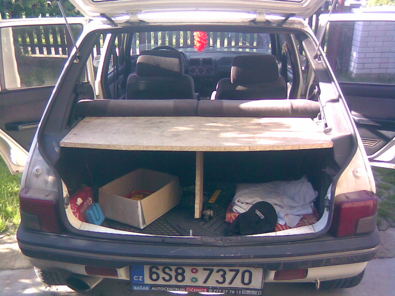 Tak jsem dneska dodělal plato na repráky ,je to foceno telefonem tak kvalita nic moc.Zitra mi kámoš zapojí zesík něco jsem zapojit zvládnul sám do zapojeni repraku basaku se radši nehrnu rad se přiučím od někoho kdo to umí. Kobrec jsem koupil v K+K metr stal 50kc tak jsem si vzal 2metry asi ho časem dám do kufru.