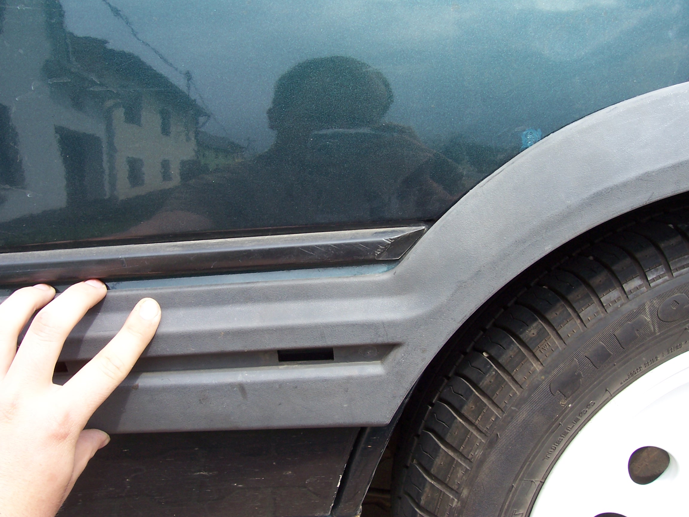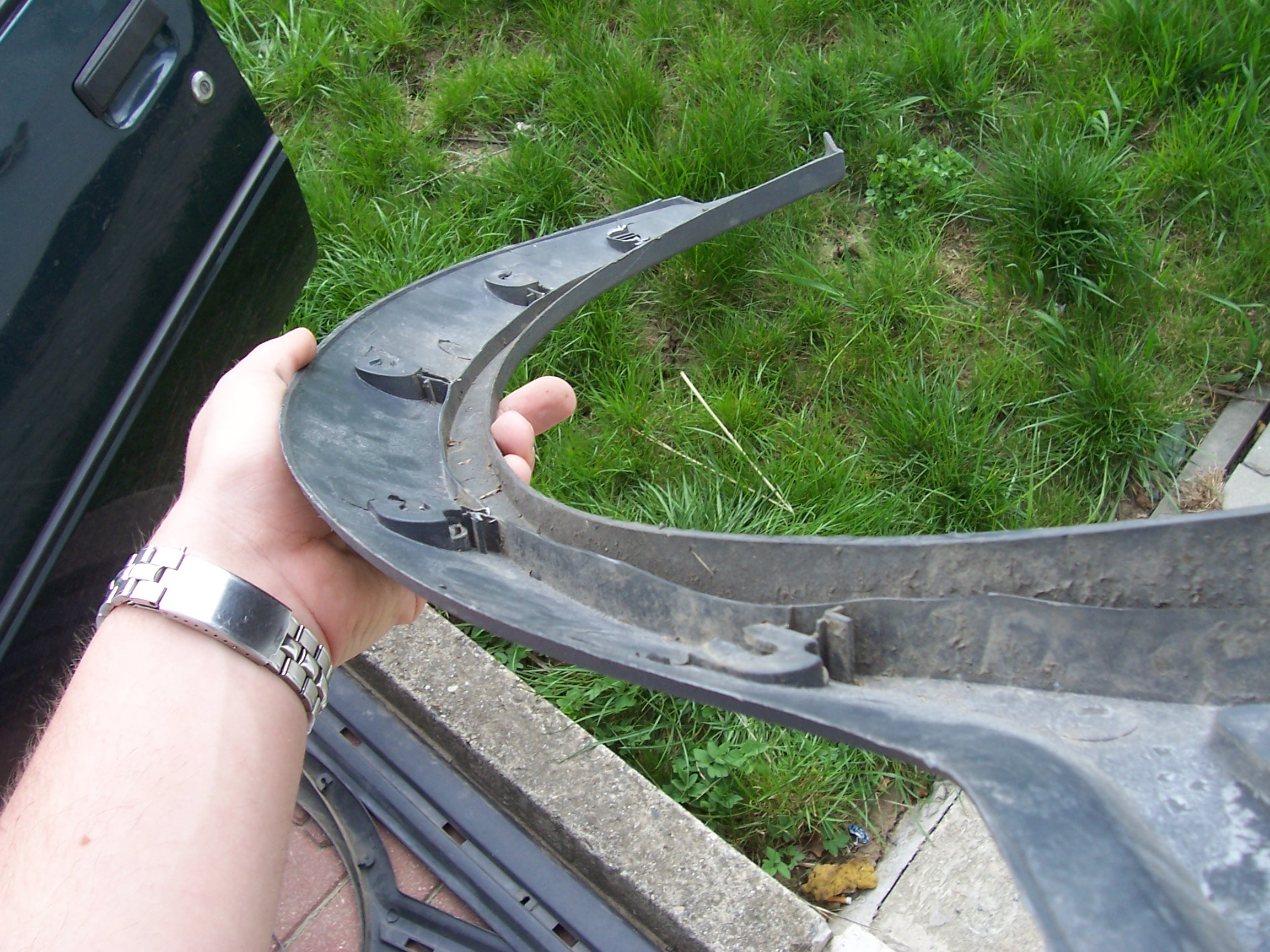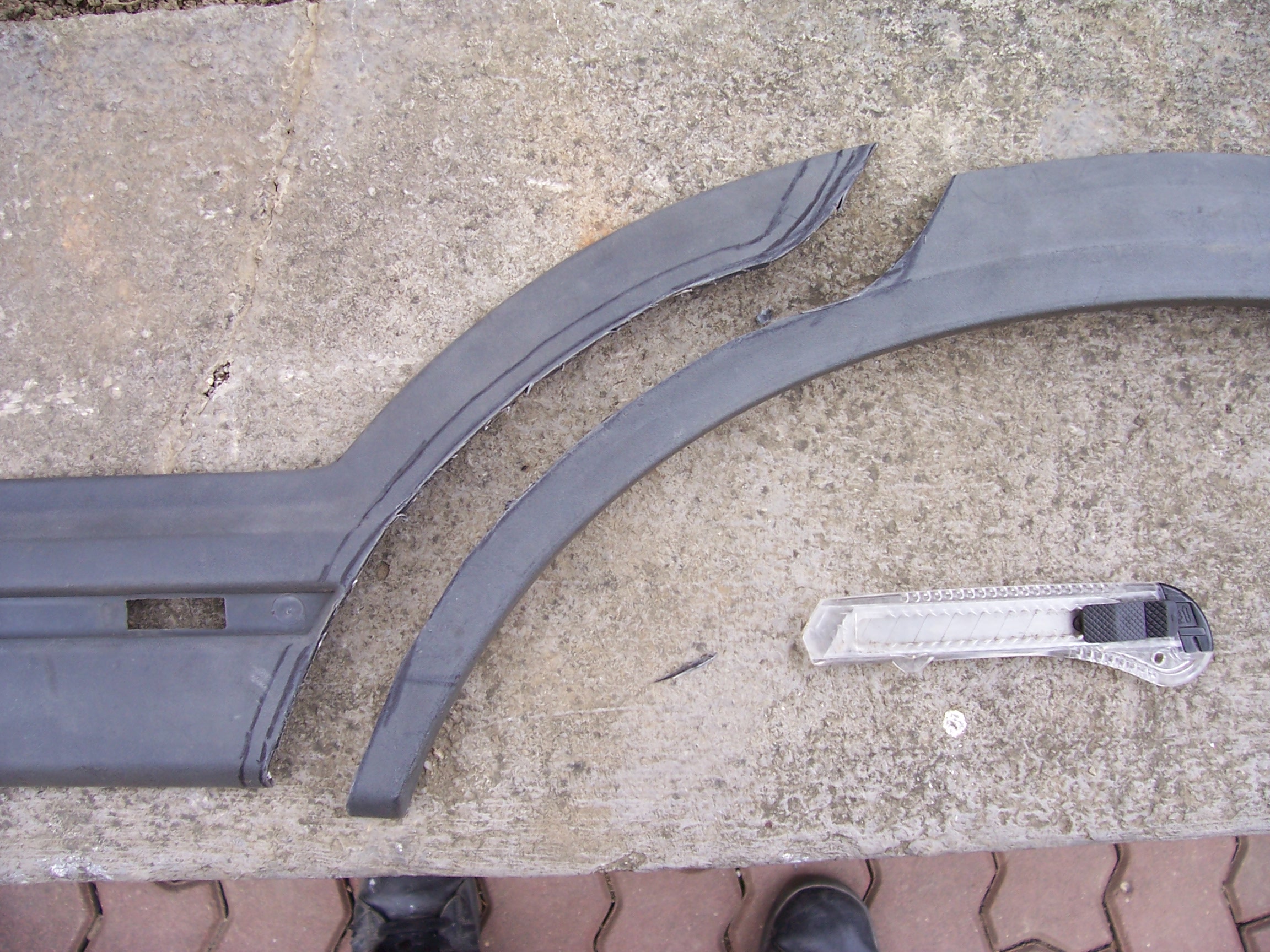 začal jsem vepředu, kde je vykrojení GTi i nonGTi blatníku stejné ... po menší upravě lemu to tam sedlo jako prdel na hrnec. Stačilo odříznou vnitřní odsazení lemu :) viz foto boční lišty jsou celkem jasné. Musí se zkrátit na délku předních dveří. zadní blatník je docela oříšek, ale rozhodně ne neřešitelný