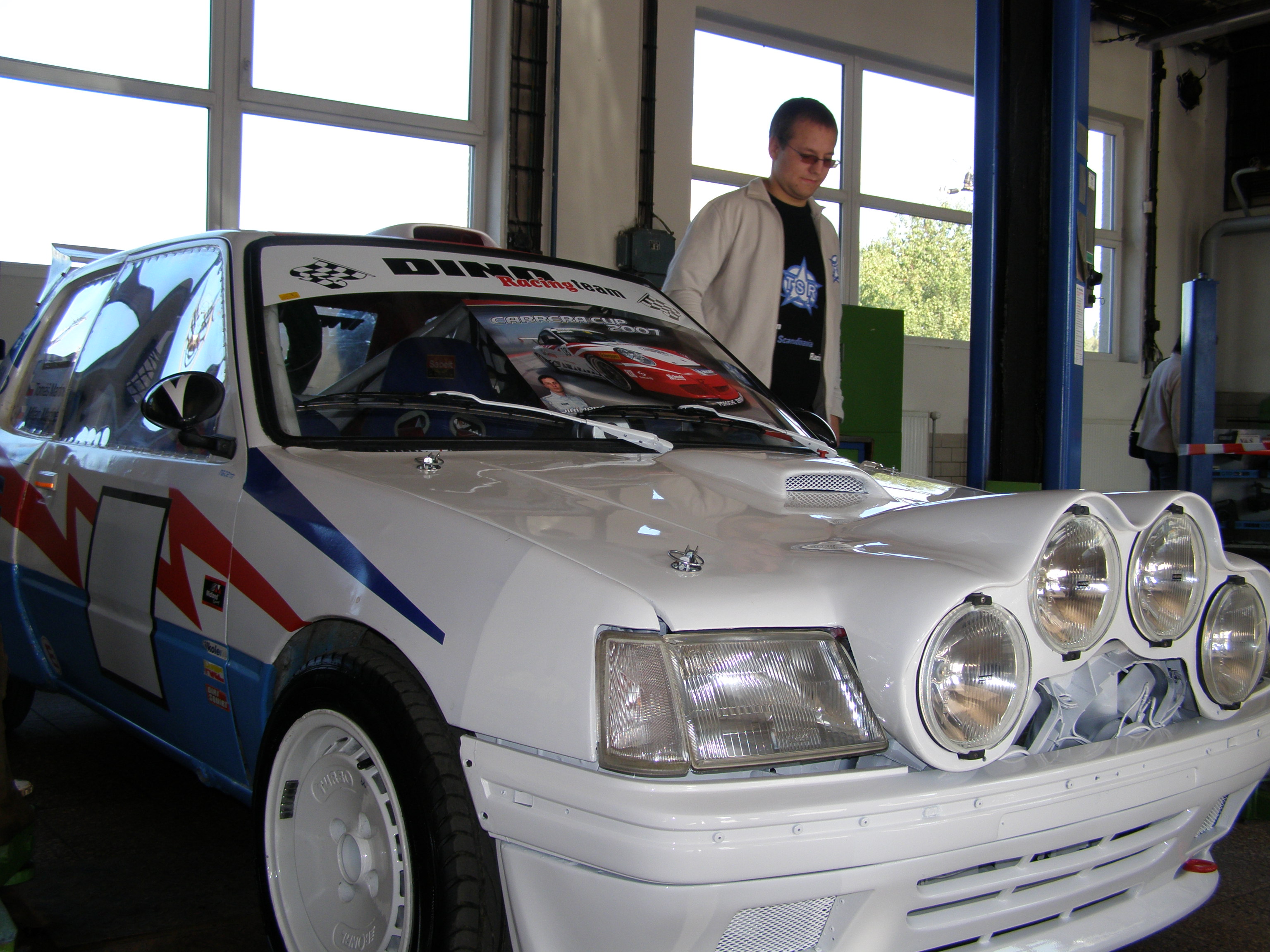 Tak opět píšu a přikládám pár fotek z Ústeckého autosalonu v dílnách automobilní školy.Na autě proběhlo pár změn jako výměna vrchní části nárazníku a pak bílé lakování.Výměna záslepek za světla a rekonstrukce náhradní rallye neodlehčené kapoty,když už jsme ji dostal k autu chtěl jsem aby trochu vypadala.