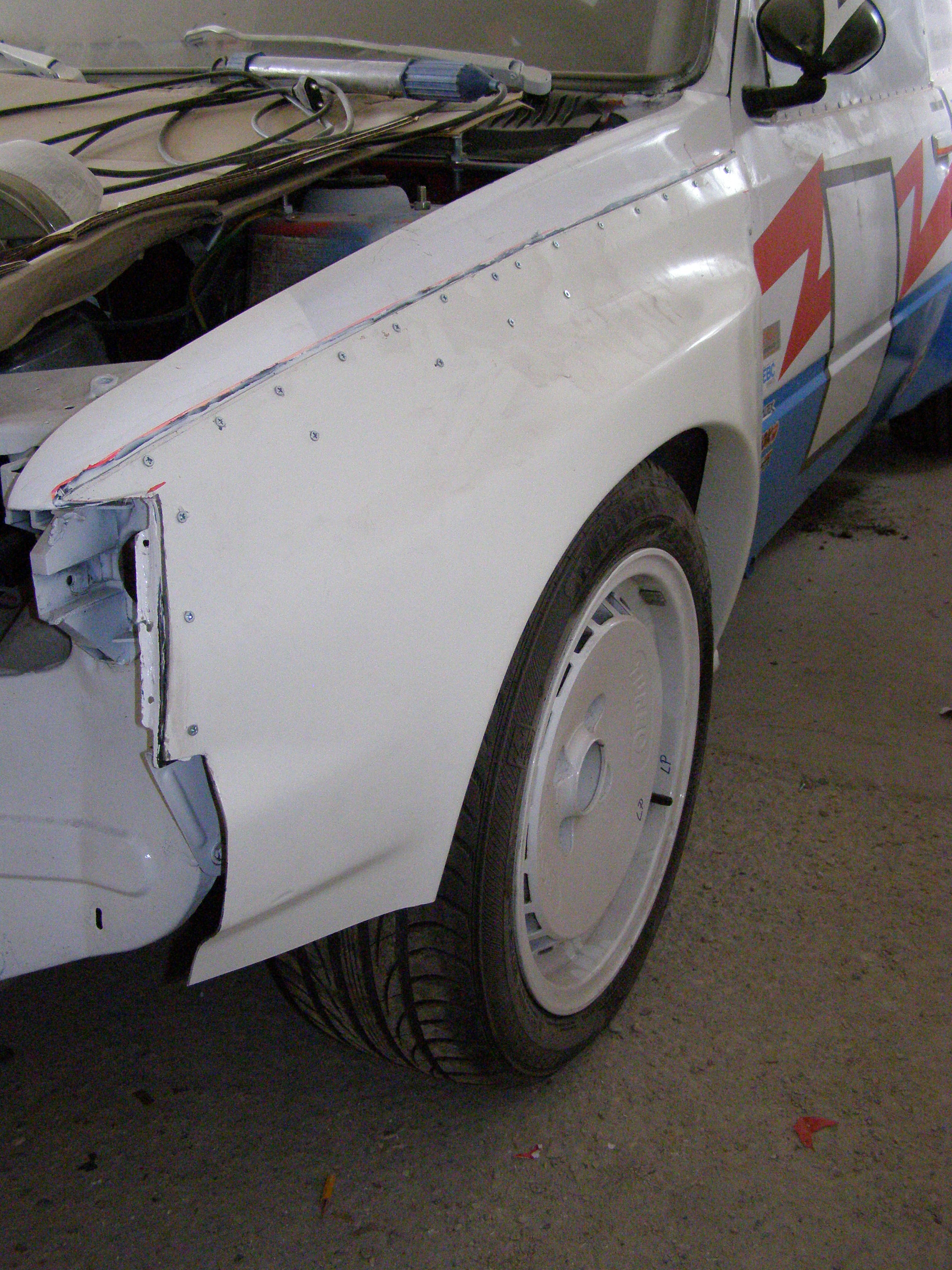 Podařilo se mě získat sadu T 16 laminátových blatníků tak pracuju na jejich montáži a spasování.Takže taková kompletní racing uprava.Takže z toho bude slušivý Peugeot 205 Mi16 Maxi kit car.Nebude ve sloupku tankovací hrdlo rozhodl jsem se odstranit origo nádrž a nahradit jí nádrží z trabanta do kufru auta,je to kvuly váze auta není potřeba vozit tolik paliva na vrchy.Chci se s váhou dostat na 790-800kg tak doufám že to výjde a že autu odlehčím a zrychlí o nějaké ty sekundy.