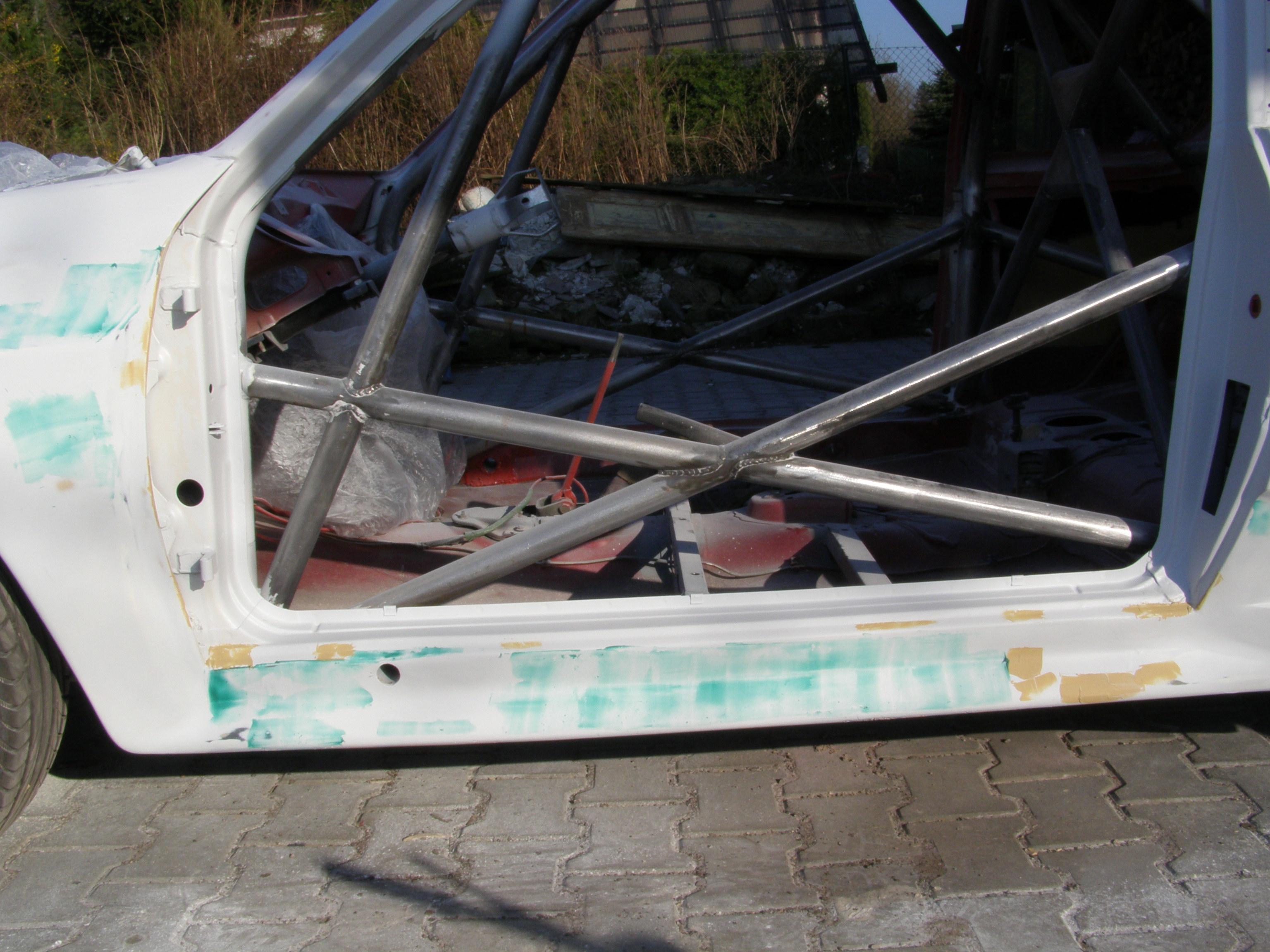 Proběhla domontáž makrolonu z malých okynek a ze dveří,dveře nebyli již vyhovující tak jsem si sehnal jiné od MSCH 205 a již jsou zahlazeny prolisy a napasované na auto před lakem,u spolujezdce zahlazen zámek dvěří.