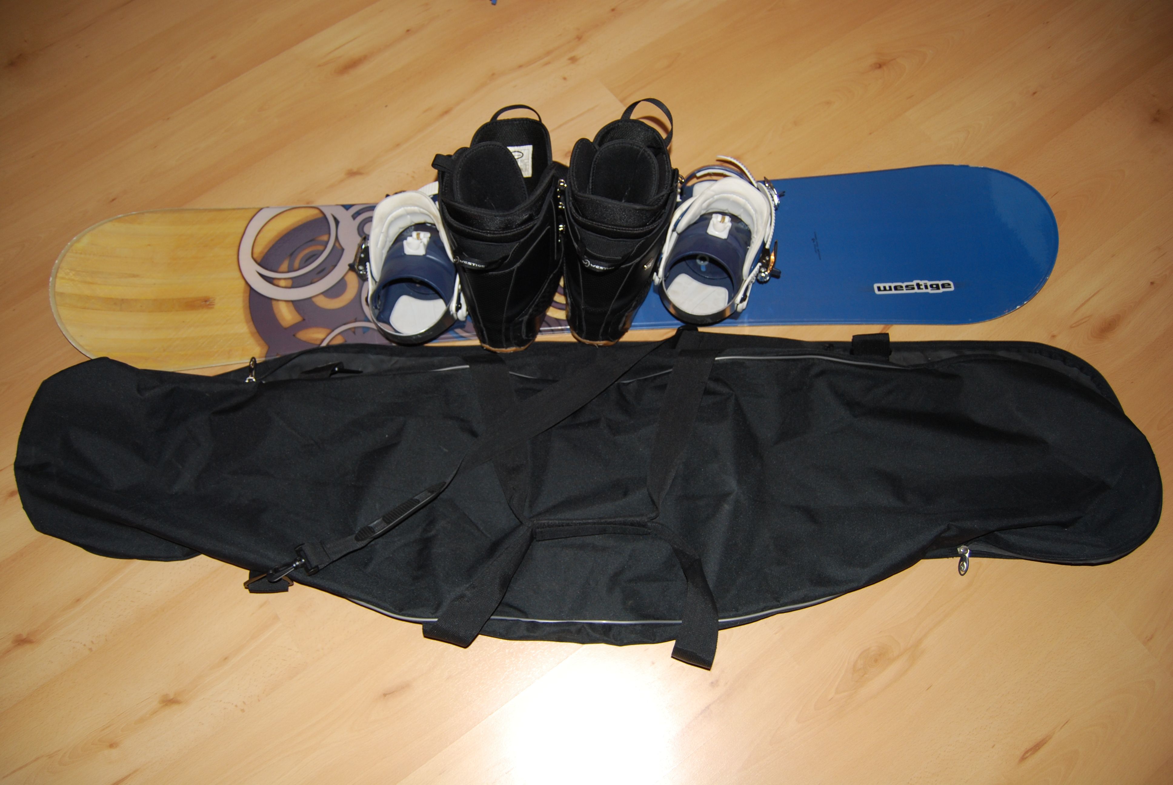 Prodávám svůj snowboard. Komplet včetně bot, vázání a obalu. Stáří bude teď v lednu 2 roky, ale je v parádním stavu, skluznice bez velkých rýh, hrana stále ostrá, z horní strany jen 2 viditelné poškození (nakouslý laminát od neznámého pachatele). Vázání je polokovové, velikost bot na fotce. Boty jsou taky v pohodě, neděravé, nepotrhané, všechny tkaničky OK. Obal na prkno je vevnitř pogumovaný, takže neprosákne. Vše kromě obalu original Westige. Cena 5000Kč, pokud bude zájemců víc, vyhrává nejvyšší nabídka :D