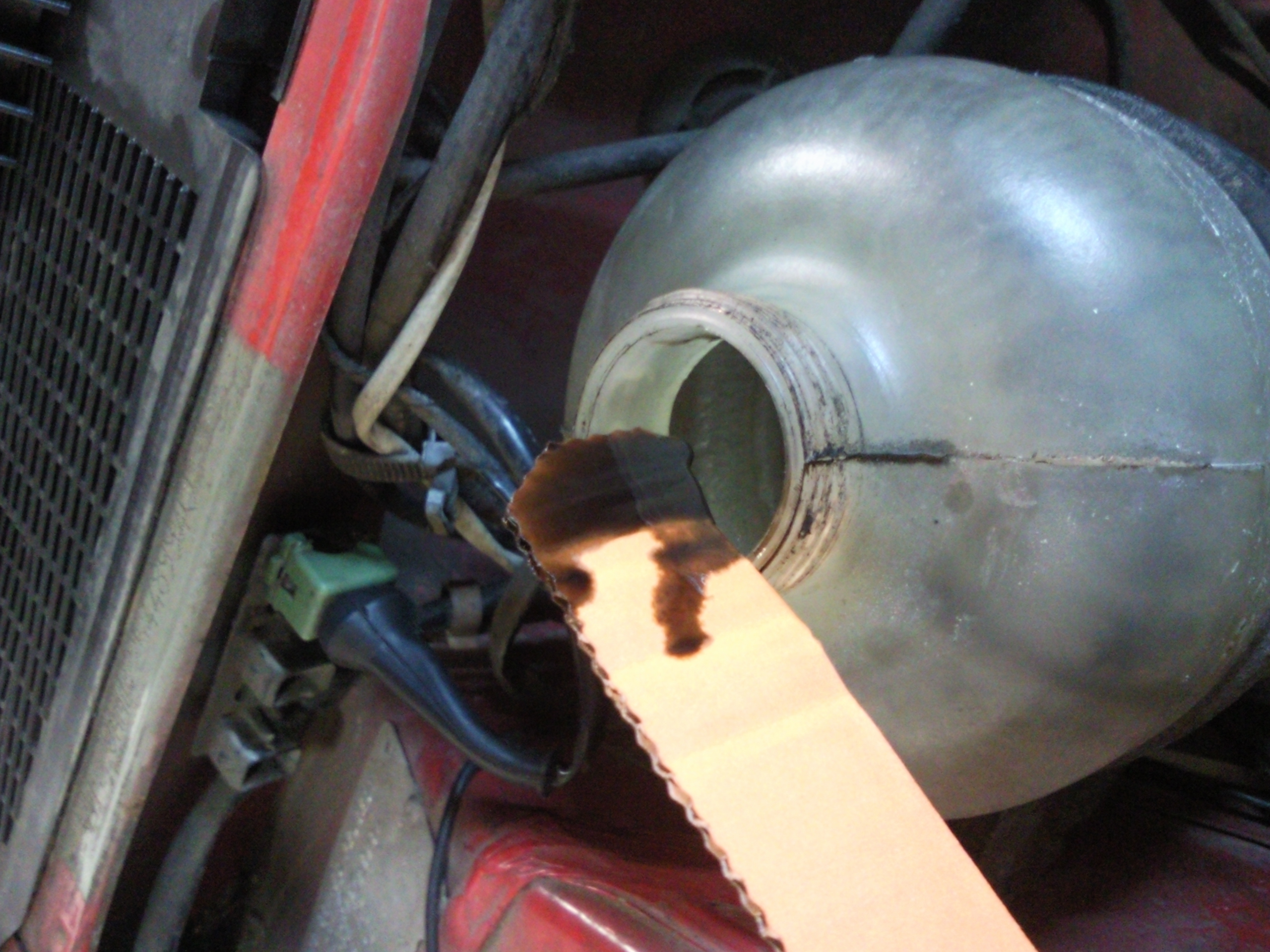 Podle fotek ma malo chladici kapaliny tak se nekam stratila treba do oleje?