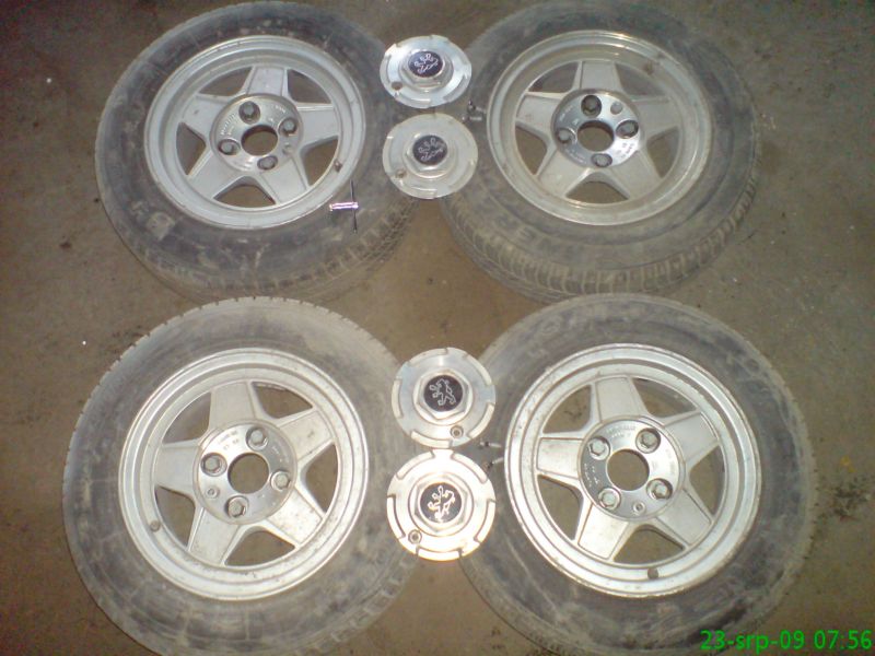 2 500,- by bylo fajn, ale bohužel na jednom kole je známka po obrubníku a loupe se z něj lak, pneu jsou tuším 165/70 R13, ale 3 x jsou Belshina a 1 x Michal