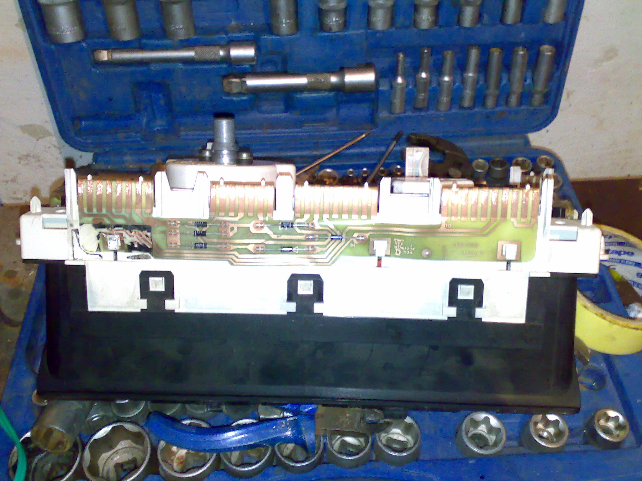 tyjo tady ten tišťák vypadá uplně jinak než na tech budíkách, co mám od phate. Na tech mejch je uplne stejnej tišťák jako na gti, jenom je tam navic ta škatule s měřením hladiny oleje, a po připojení fungovalo všechno bez problému bez nějakejch zásahů do zapojení. skus vzit multimetr, nastav si tam "zvonek" a skus si od žárovky podsvícení kerý cesty k nim vedou a pak to porovnej se zapojením v autě. viz příloha