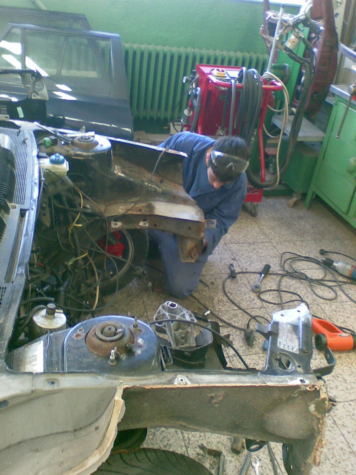 Tak práce pokračuje , auto je v naší autoklempířské dílně a takhle hezky na něm pracuju :-D