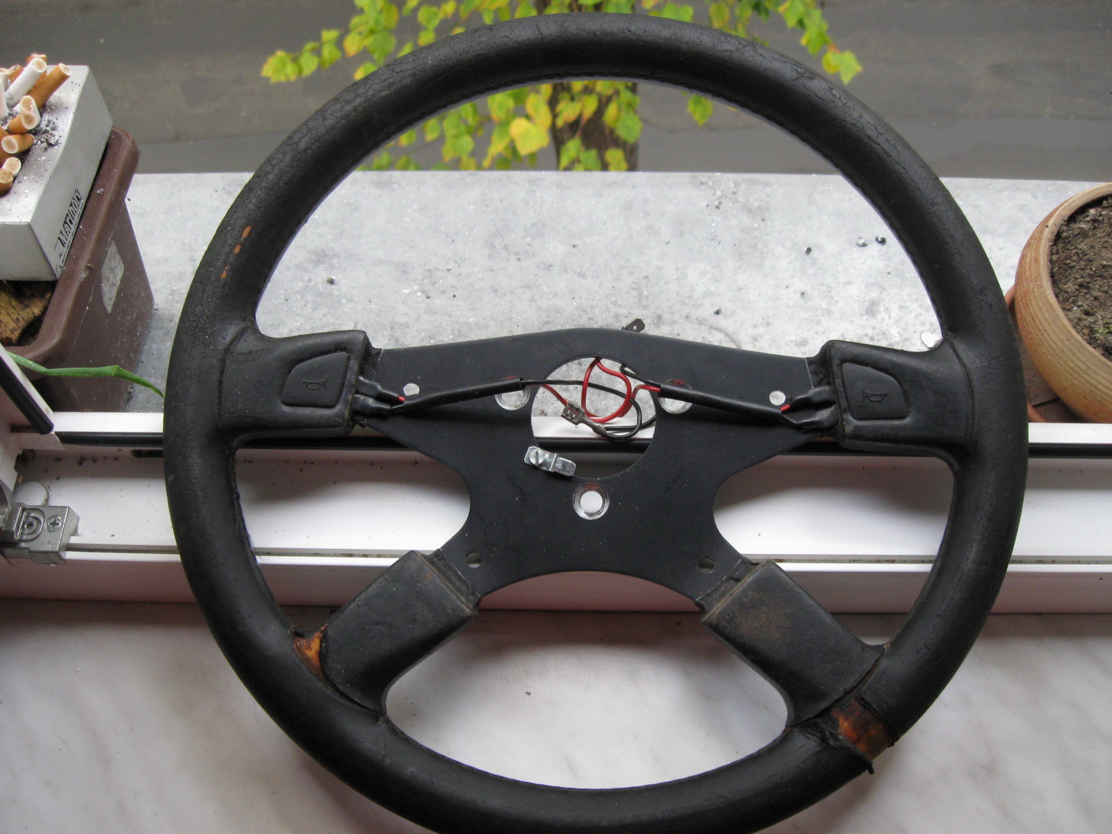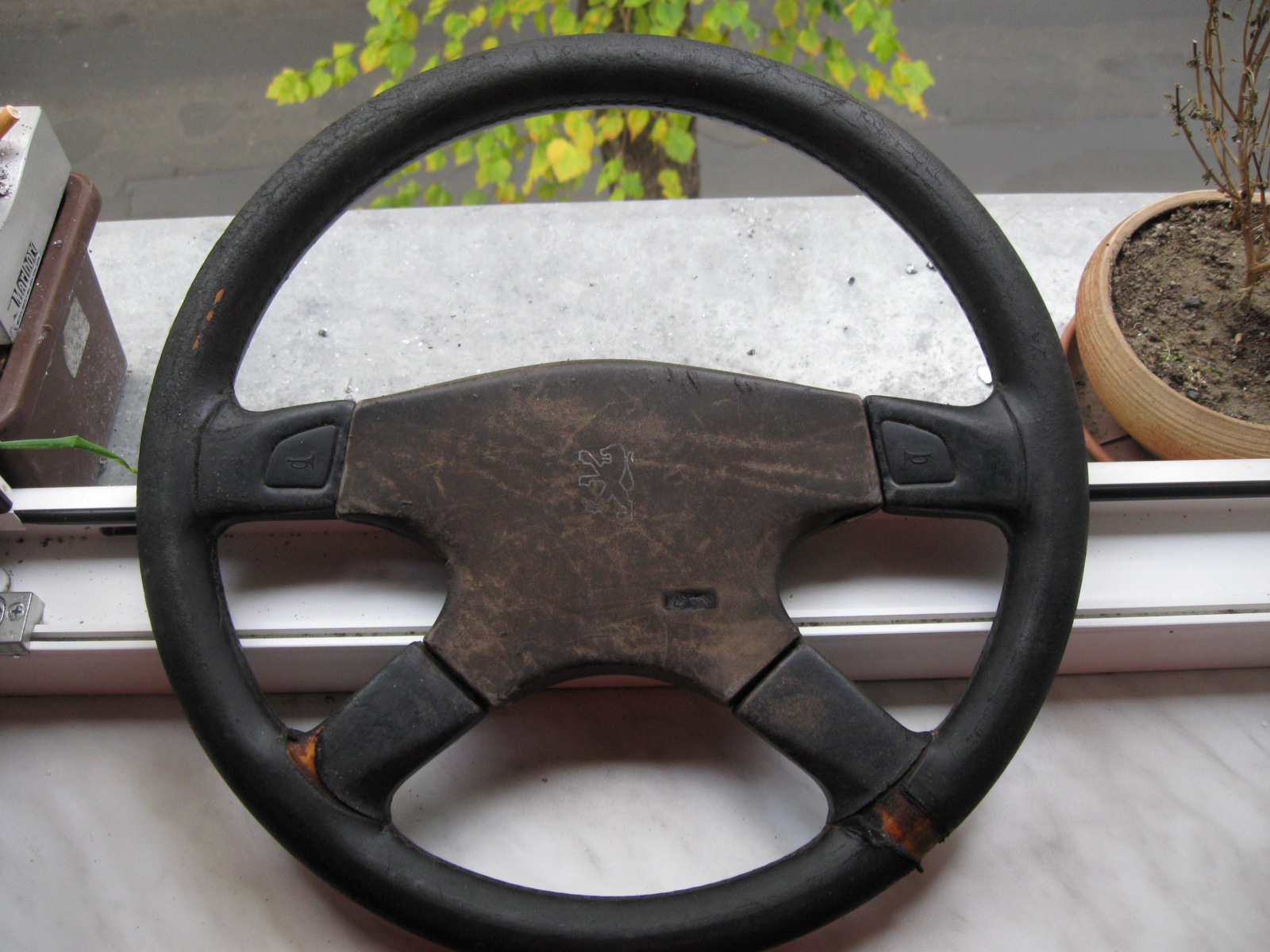 Prodam tento volant peugeot. Volant je vhodny ke zrestaurovani, ale prijde mi tvarove hodne zajimavy (nevim z jakeho typu peugeotu jem kdyby jste vedeli, tak napiste docela by me to zajimalo), proto ho sem davam, treba jeste nekomu udela sluzbu. Ma ctyri ramena, z toho dve jsou s tlacitky klaksonu. Pro pripadne zajemce muzu udelat dalsi fotky, ted mam KO baterie.