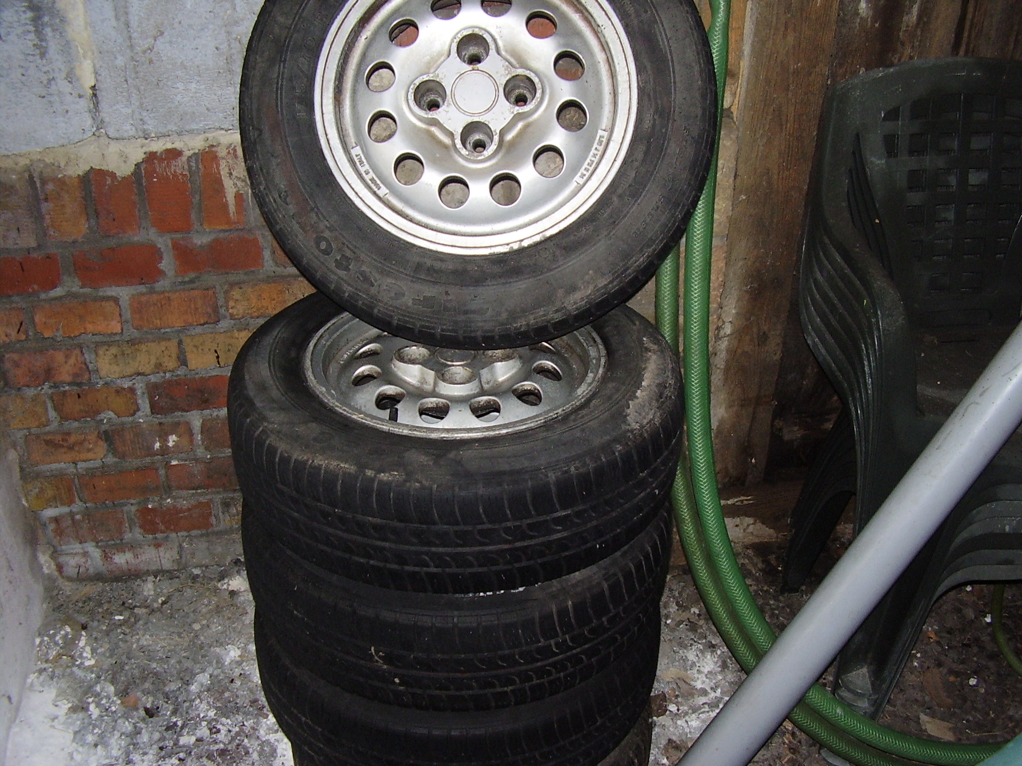 Prodám alu kola Speedline, pneu je špatné tak k diskům přidám 4x pneu 175x60x14 vzorek 2x4mm a 2x5mm. Ke kolům mám i šrouby s rovnou hlavou 16ks. Kola 2200kč, šrouby 600kč, pneu 200kč za 4ks. Upřednostuji prodej všeho najednou, nemám místo.