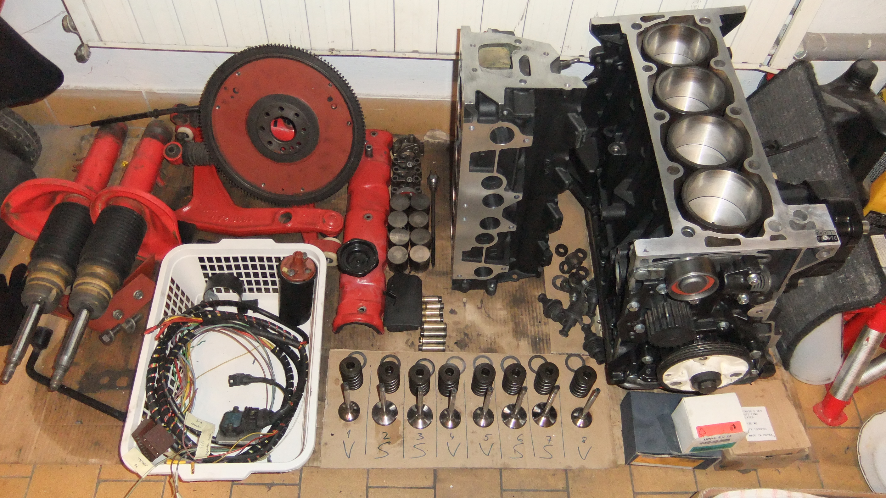 Tot zatim vse, bude nasledovat slozeni spodku 2,1l - odlehceny 1,6kovy setrvak, odlehcene kovane pisty, prebrousena klika na novych kluznych loziscich a o zub vetsi kolecko na prevodu k olejovemu cerpadlu + kompletni vyvazeni (celek setrvak-klika-pisty)