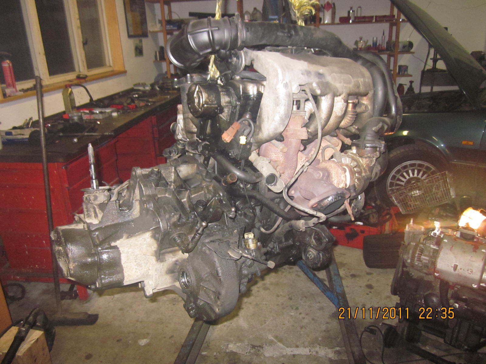 Tady mam nějaký fotky z opravy, nejvíc mě naštvalo že musel jít ven i motor!Když už byl venku motor, tak jsem přehodil sání a dodělal intercooler...možná jediná výhoda :-D omlouvam se za kvalitu