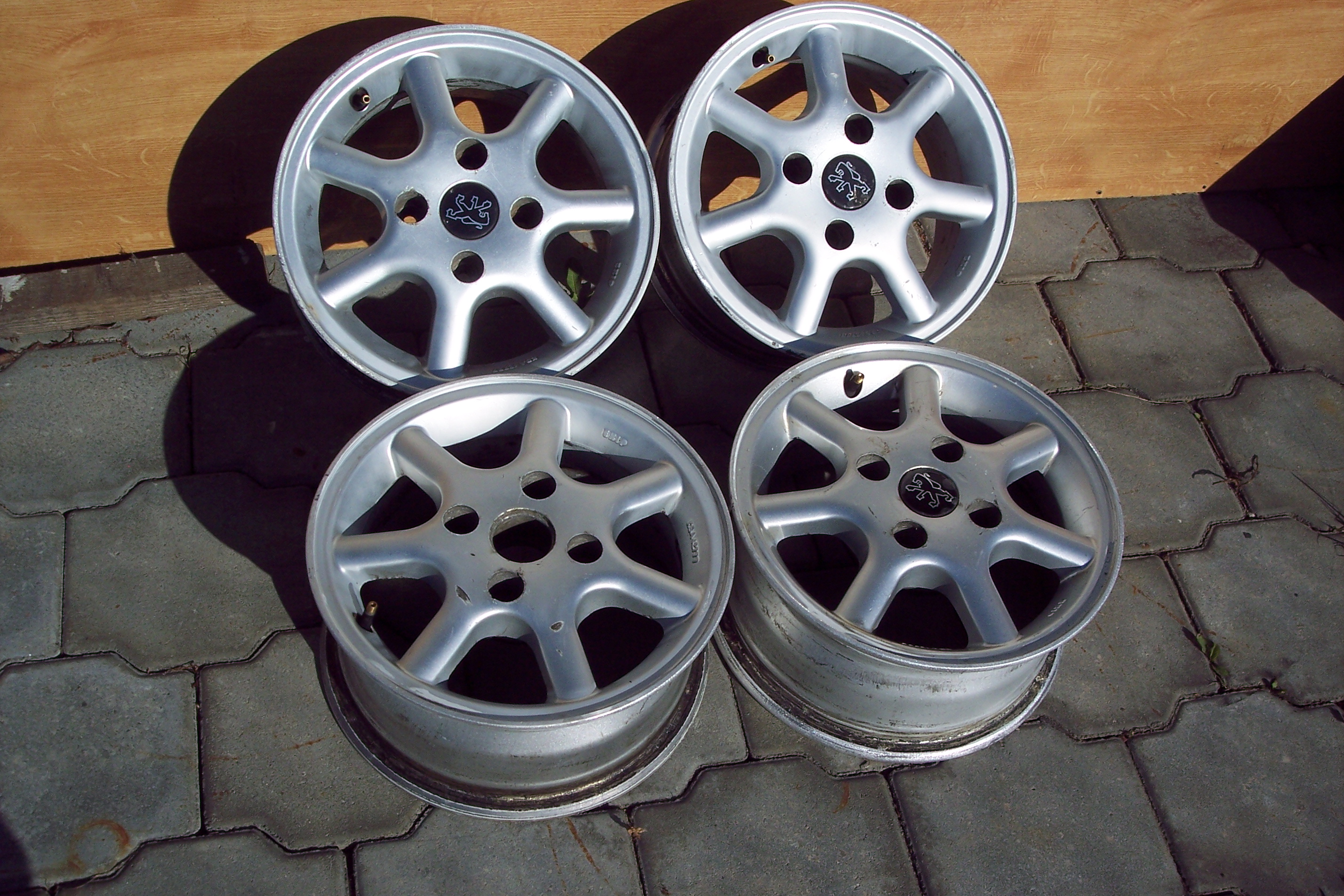 Prodám lité kola peugeot 13" stribrne. Kola jsou vyrovnana, tudiz nehazou. Jevi znamyk bezneho opotrebeni. Bohuzel jedno stredovou krytku nemuzu najit. Nejlepe osobni odber.