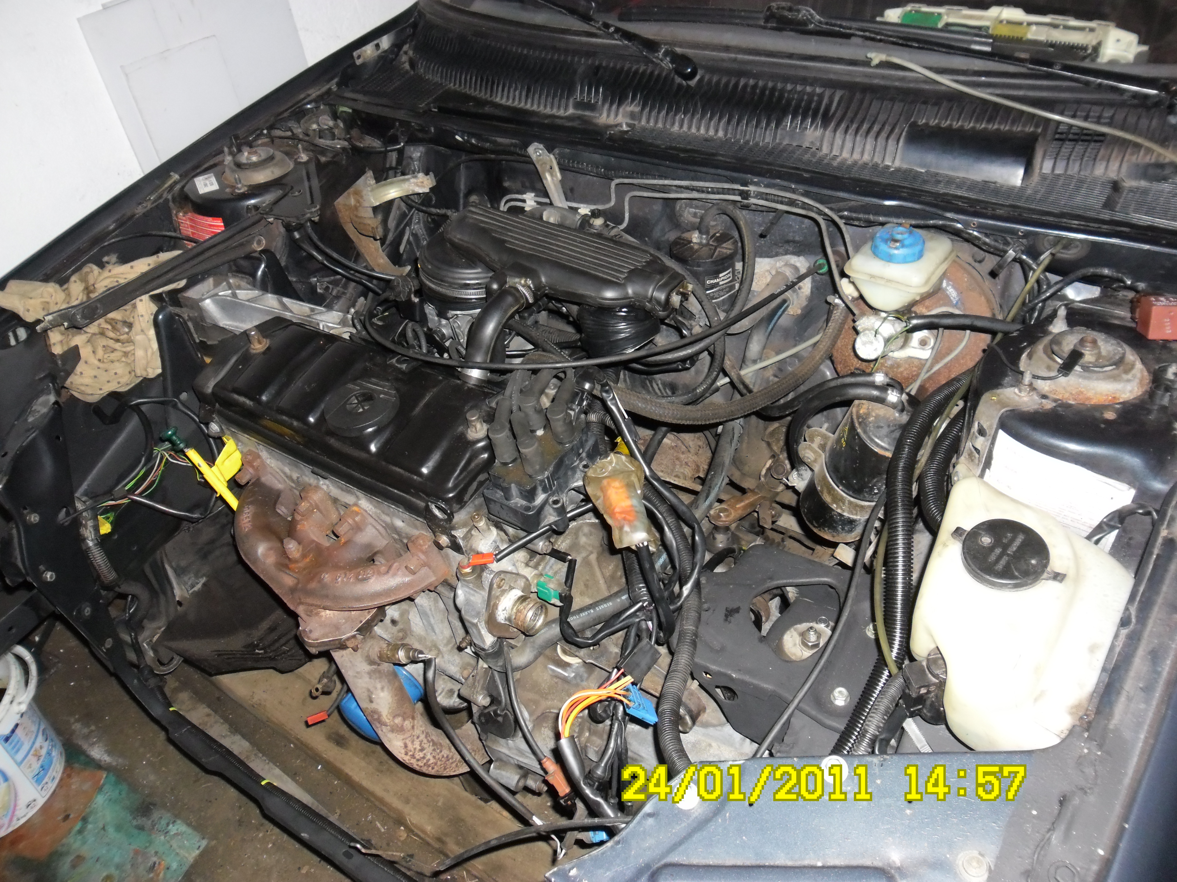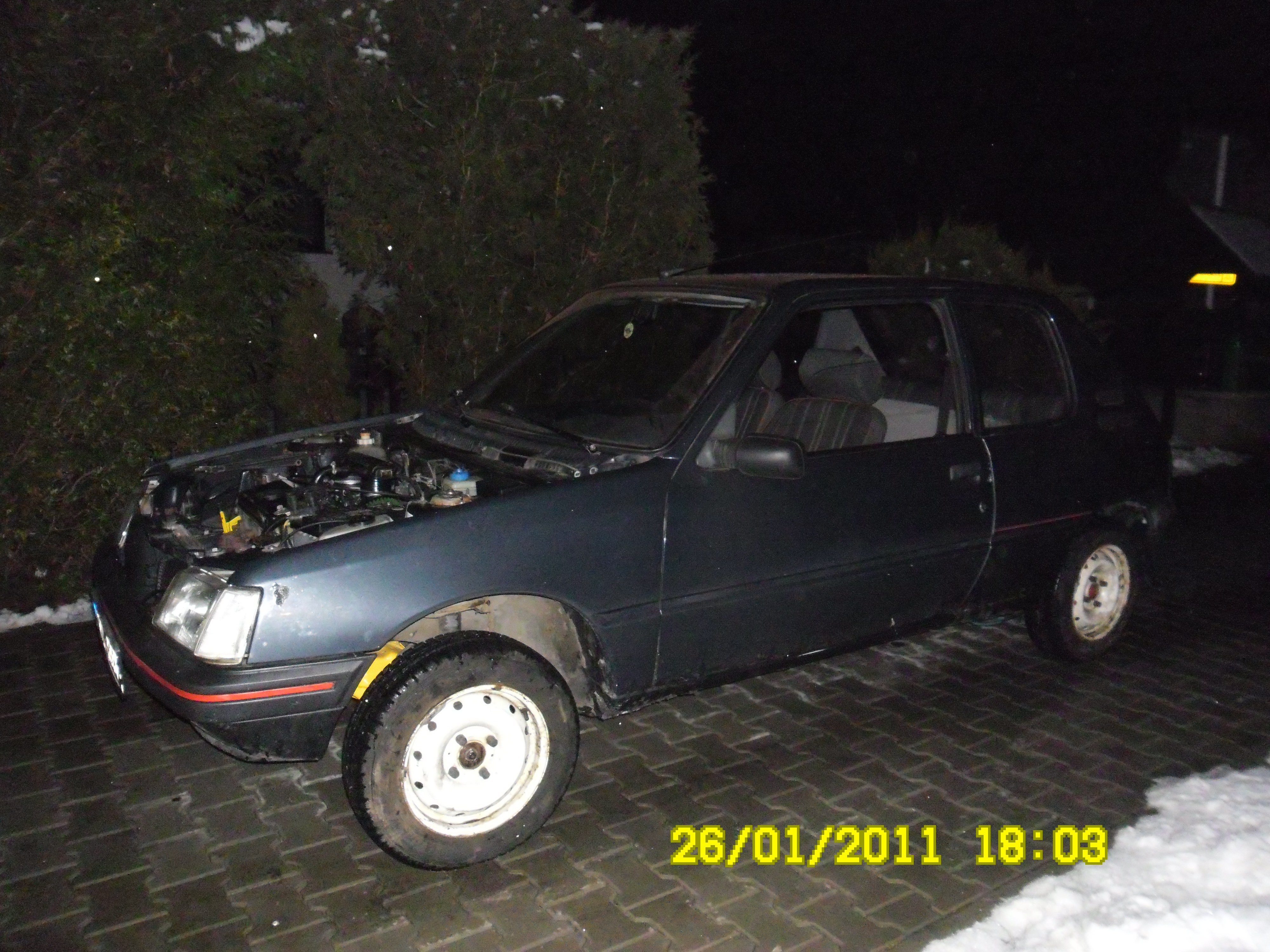Tak co sem měl havárku tak sem potřeboval auto už sem si říkal že snad seženu třeba Felcku nebo tak bylo mě to jedno hlavně aby bylo s čím jezdit. Tak jsem zavolal kámošoj co vozí auta a tak a že má jednu 205tku na díly tak sem se jel druhý den jel na ni podívat a docela v dobrým stavě za dobrý prachy jen tam nebyla zadní náprava tak ta se dala z mého. Motor vypadal dobře jen tam nebyl rozdělovač a palec tak se jelo na vrakáč a sehnal jsem jen rozdělovač a palec sem nemohl sehnat. A když sem koukal co je v nadržce na vodu tak koukám že je tam olej tak jsem si rekl tak to rovnou přehodím motor. Ještě že nebyl zadřenej jak to šlo na boudu tak se začalo odstrojovat, nejvíce mě nasralo že se musí předělat elektrika.....každej říkal že sem blázen že se do toho pouštím že sem si měl koupit raději jiný auto. Ale nakonec to šlo v pohodě :)