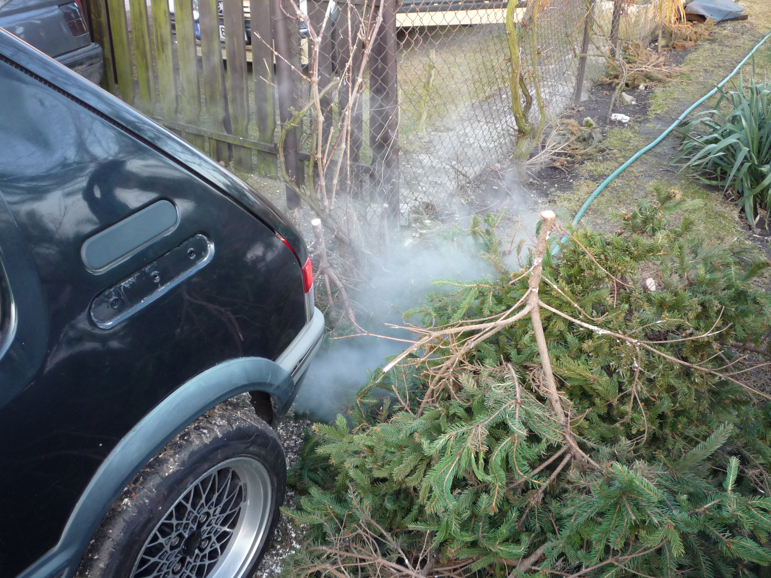 Dneska jsem zas trochu dělal na gti. S bratrancem jsme zavařili vymlácený uchycení ramene na nápravnici. a já jsem si odpoledne hrál s vejfukem. Na to, že jsem poprvé držel svářečku v ruce, to nedopadlo vůbec zle! Takže gentry už nemá vzadu rouru, ale jen malej ocásek a konečně je slyšet zvuk motoru.
