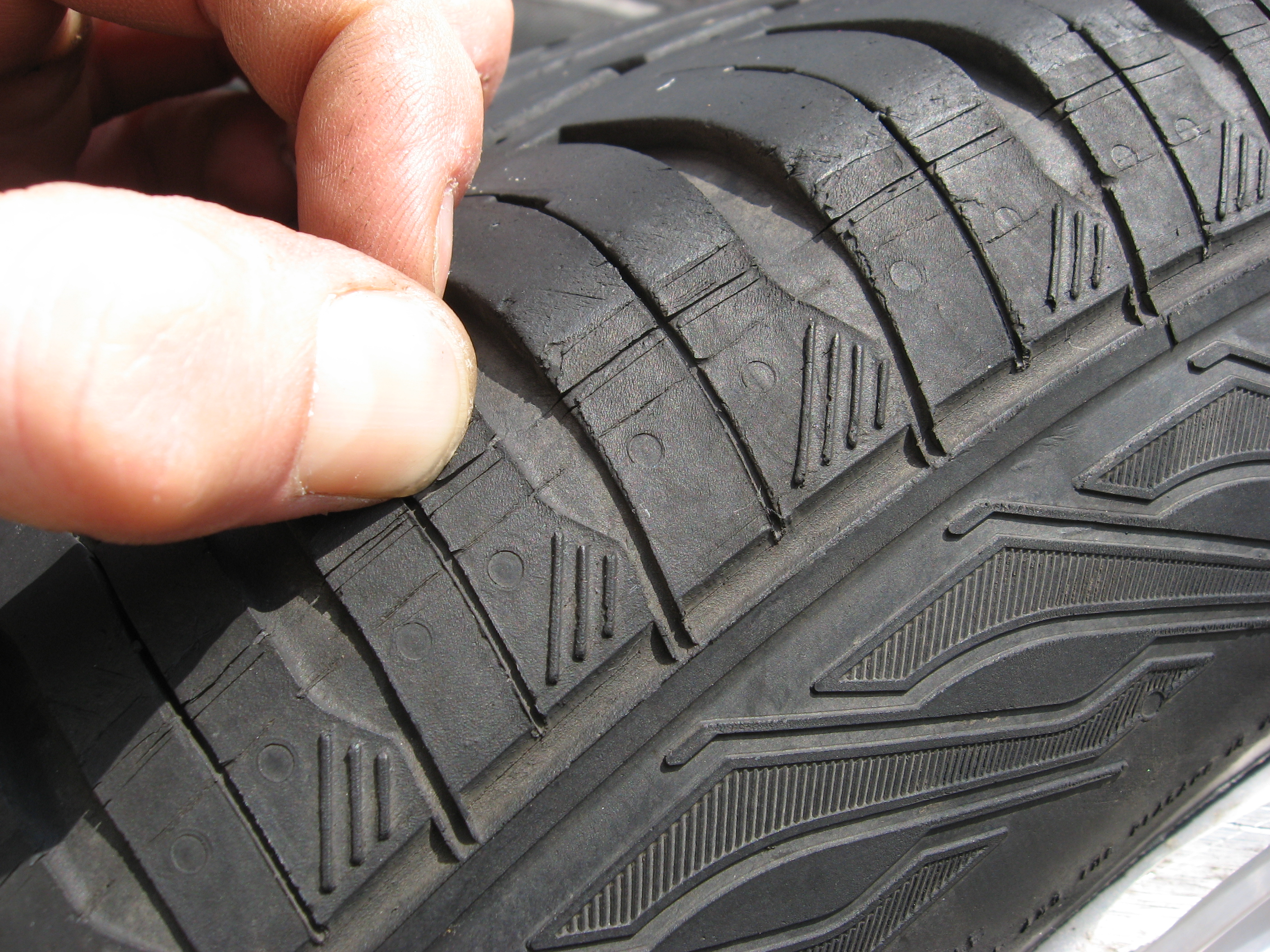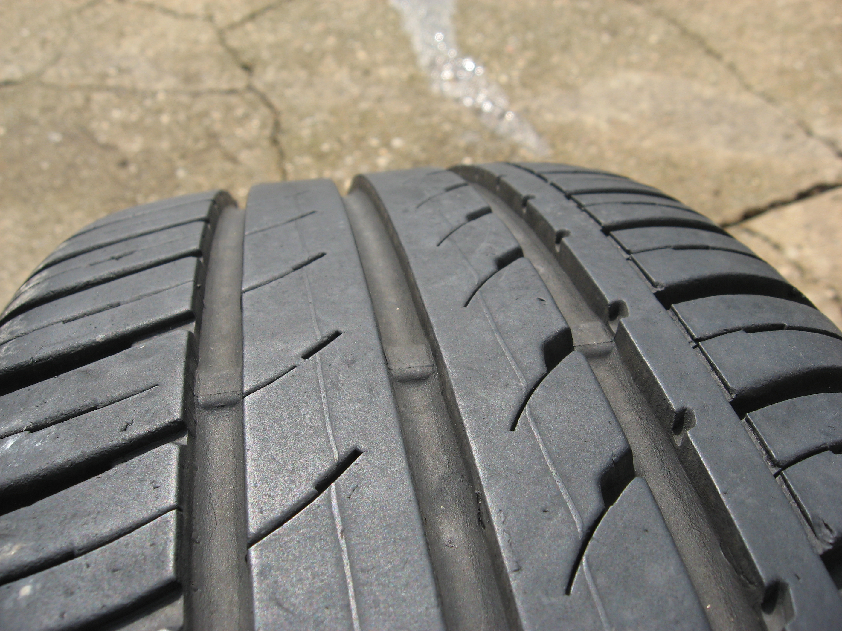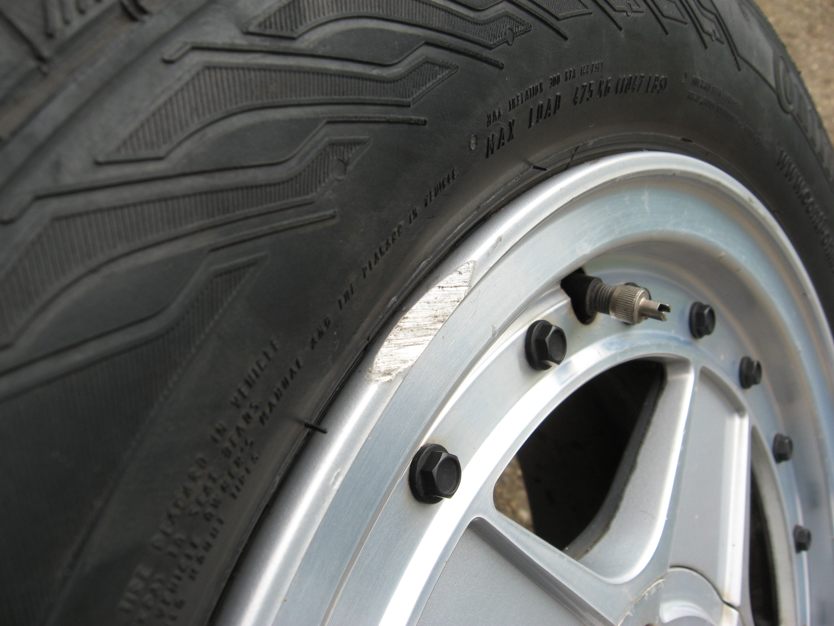 Jednou za deště jsem zapad do napříč rozkopaný silnice,za sucha dobrý za mokra rozblácený a nepřejetelný,nebylo tam žádné označení, při pokusu vyjet jsem v tom protočil kola,takže na jednom je po celém obvodu rýpnuto,na druhém jenom část kola nic hlubokýho jen povrchové.Pak jeden disk má defekt není nijak prohlí či deformovaný.