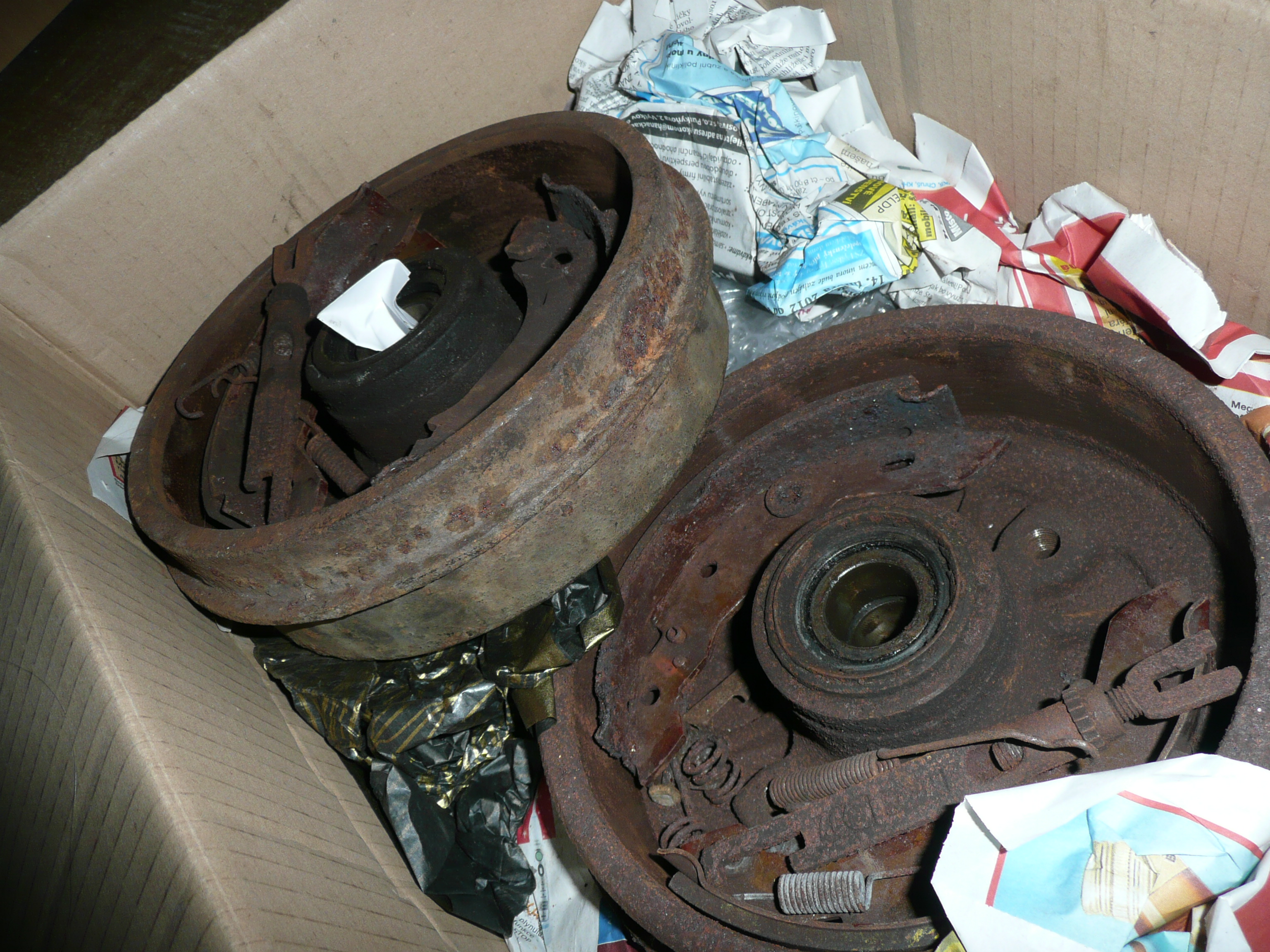 Prodám oba brzdové bubny s ložisky + obložení + upevňovací díly obložení (prostě vše kromě prasátek). Brzdový systém je Lucas (měl by to být Lucas, na čelistech je napsáno Lucas, ale raději ještě zkuste posoudit sami podle fotek).