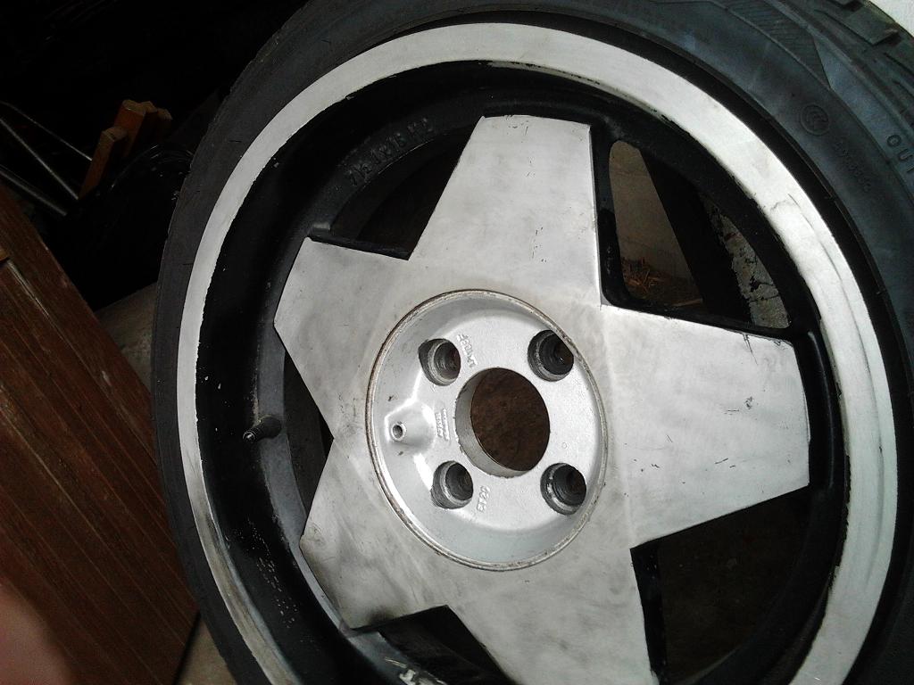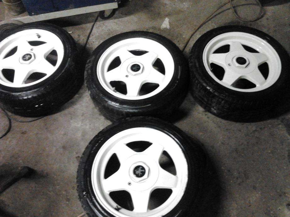 Značka ATF, minulé léto stříkané na bílo, nehážou. Jsou na nich pneu Barum 195/50, na dojetí. Jedno kolo má na dvou místech trochu odřenou barvu, je to zamázlé štětcem je to vidět až při blyžším pohledu. Cena 2500,- Kč. Na fotkách jsou na podložkách.
