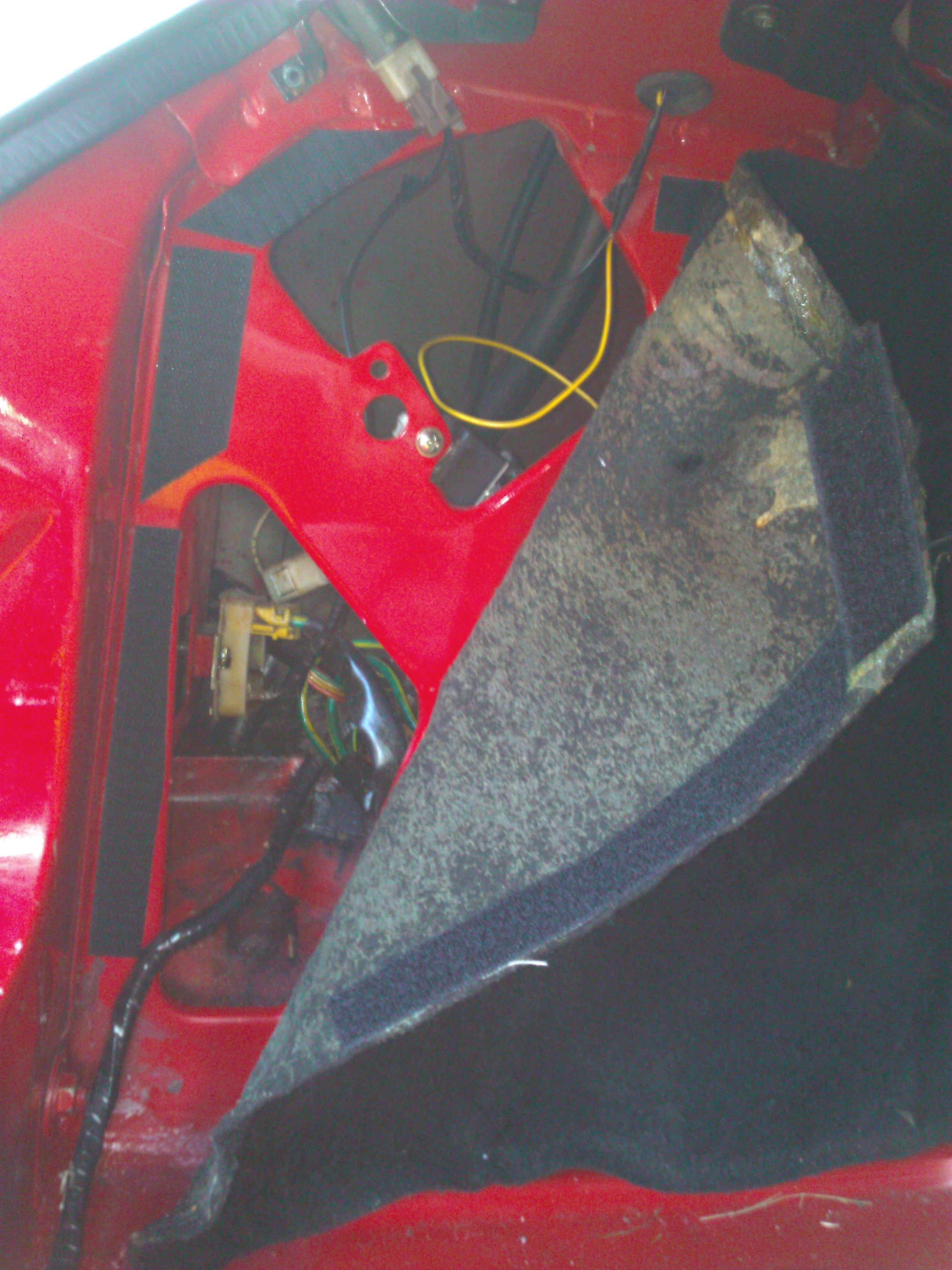 V týdnu ještě vyřežu nový koberec v kufru, přišiju suché zipy a přilepím k podlaze.