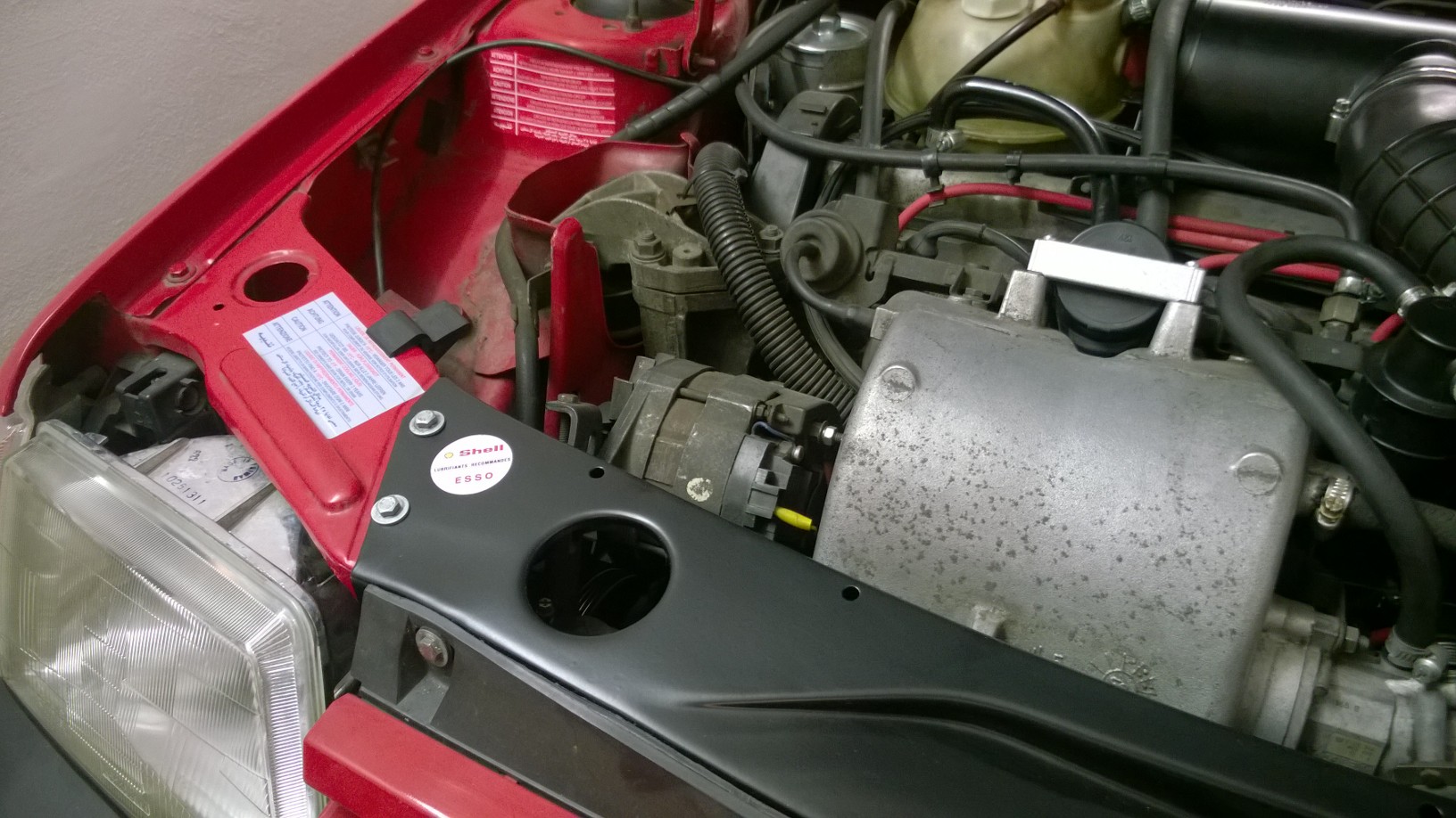 Ano, uznávám, že by asi měla být na víčku nálevky. Když jsem si ale dneska vygoogloval fotky motorového prostoru, tak ve větší půlce případů to bylo vylepeno na příčce. Spíš to ale bude tím, že se to Frantíkům na směně nechtělo trefovat na to malé víčko :)