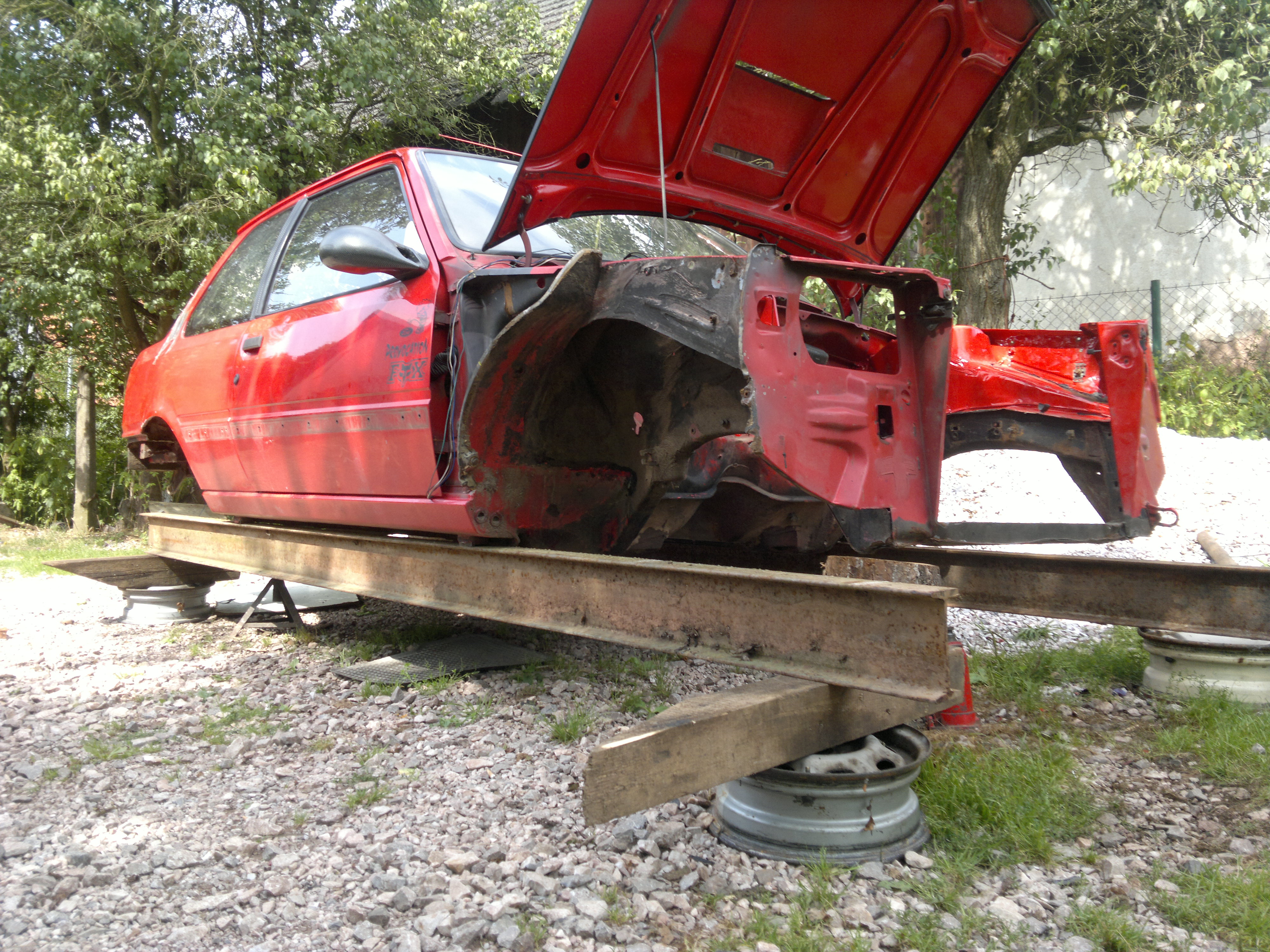 309 front wishbones, 205 1.9 GTi 88kw front hubs, 307 front brakes (283 mm), 309 GTi rear beam, 309 GTi rear brakes (247 mm), XU9JYH engine, uni ball gear links...