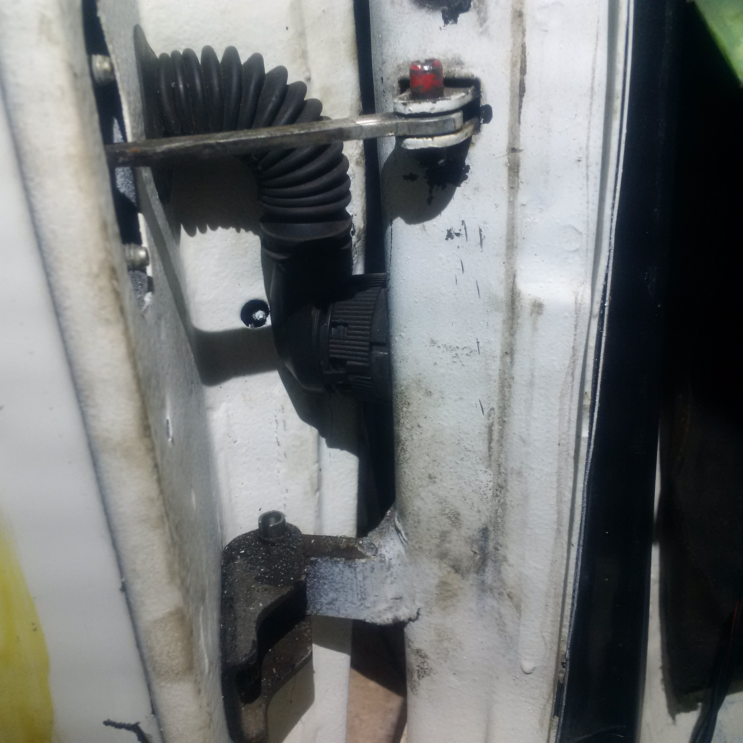 a ten rozdil je v tom ze elektrika tazena z auto do dveri je u stareho modelu jen v prachovce a u noveho modelu je tam mezi dverma a kastli ten sroubovaci stekr na jednoduche odpojeni jenze to me tam bouzel nejde protoze kdyz otevru dvere na maximum tak se mi o tu zasuvku opiraji :-/ viz foto