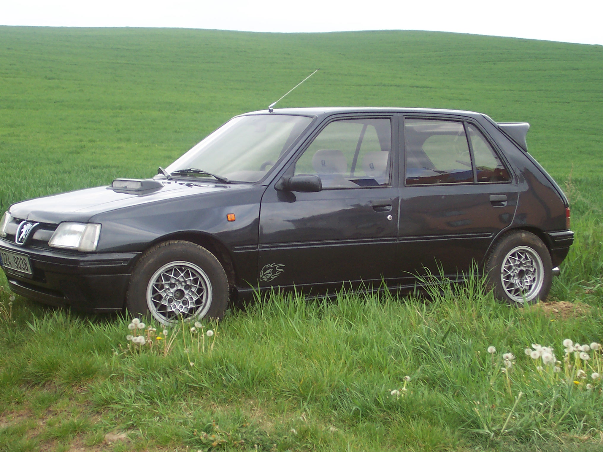 Když jsem se před rokem rozhodl si konečně si udělat papíry a následně si koupit hned po té auto, můj rozpočet byl do 20 tis , představa byla o 205 nebo Fiat Tipo.Prolízal jsem internet jak blázen a nemohl jsem nic najít kloudnýho.A když už jsem něco našel tak to bylo něco z roku 89 co už pěkně kvetlo.Když uz jsem myslel že peníze radši investuju do parašutismu kontakoval mě kamarád že by o jedné 205 tce věděl.Po domluvě jsem se na autíko dojel podívat,nechtěl jsem nějak "vytuněný" nebo jinak upravený auto , ale řekl jsem si že za tu cenu si to klidně koupím a pak to třeba sundám.Vypadalo pěkně,1.4 55kw najeto 160 tis .Cena tedy byla 20 tis plus "litáky" (made in china asi) fakt paráda maj tak super rozteč že bez rozšiřovacích podložek není možný je tam ani dát.Ve předu nákej spojler ani nevím z čeho ale když tak na to koukám tak asi z GT,prahy a v zadu supěr křídlo řekl bych že z golfa nebo aspoň jsem to na hodně viděl:) zadní náprava do A takže je to parádní líp to sedí v zatáčkách vím že mi to nikdě neustřelí:)a Zvuk? když jsem se ptal proč to tak řve tak mi bylo řečeno že stačí dát jen pryč koncovku a bude to zase v pohodě.No já amatér na to skočil tak jsem si říkal jak stím dojedu dom něco stím provedu.Cesta domů byla docelá zajímava nad 120 km/h jak jsem předpokládl že nasadím na dálnici by se sice dala ale jen s klapkama na ušima nebo helmou nebo prostě nevím:D takže jsem si držel svejch 90 kde ten zvuk byl ještě v rámci mezí k vydržení.Když jsme dojeli dom rozhodol jsem se to zvednout u kámoše a něco stím udělat.Po zvednutí jsem se nestačil divit.Místo katu nákej šilenej rezonátor a v něm 2 díry vrtačkou aby to mělo "echt" zvuk mno a v zadu nějakáa šilená koncovka WM.Nakonec se jen zavařili díry nechali se to z nedostatku financí bejt.Byla potřeba vyměnit olej filtr a takový ty věci a ještě odešla baterka.Jinak autíko mám už rok krom toho zvuku a zadní nápravy která mi drhně ve větších zatáčkách o podběhy ( ale plánuju stím něco udělat začlo to až teď) si nemůžu vynachválit.najeto 16 tis bez jedinýho problému, spotřeba tak normálně 5,5 L když tomu člověk dává tak 6 max 6,5l. Přidávám jedno foto jak to teď vypadá všechno stejný krom přední masky ta je tam origo z 205tky tohle jě něco z boxera mi přide:D vážne nevím:)