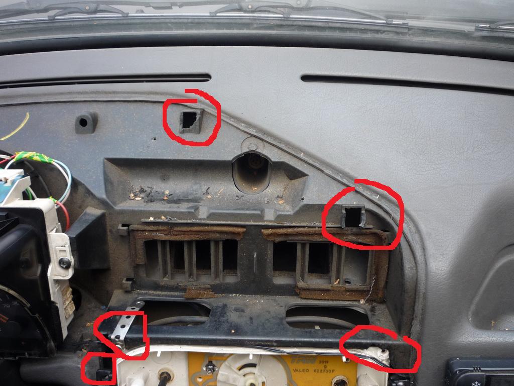 mám takovej větší problém: nevim co s tim předešlej majitel vyváděl, ale sou tady urvaný držáky pro přišroubování ovládání topení, středového panelu a kaple.