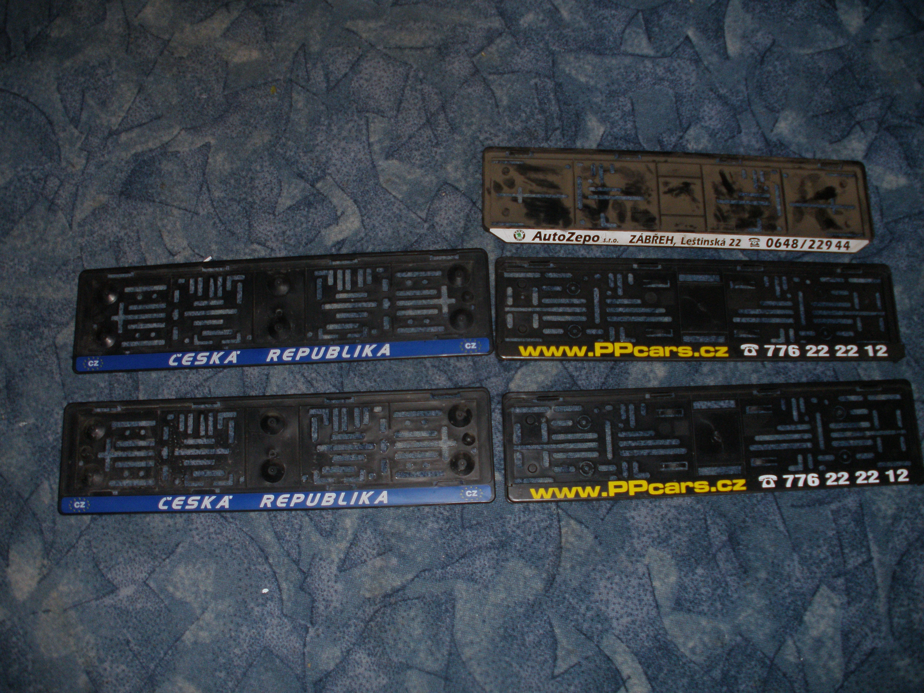 Podložky pod SPZ - 2x PP Cars, 1x Zepo - spíše na pokusy nebo někomu, komu nebude záležet na nápisu
