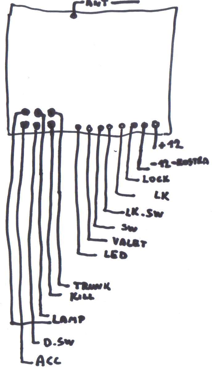 To je z velkého konektoru, taky tam je ale menší konektor a tam jsou kabely dva na Lamp, dále po jednom kabílku : D.SW, ACC , Trunk a Kill.