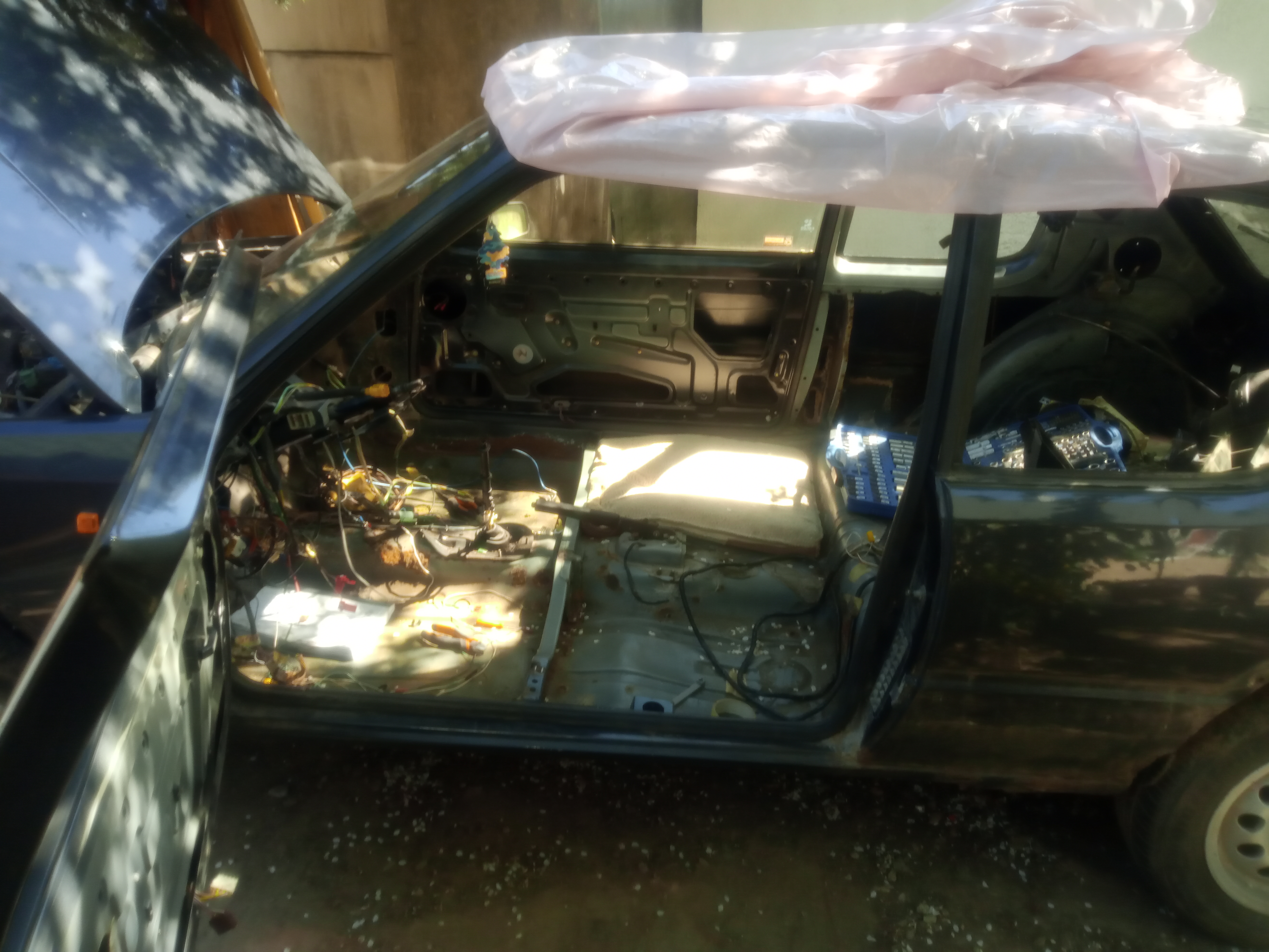 Ako to už býva, keď už som konečne dobojoval s dovozom švéda, zrazu sa na internete na krátku chvíľu objavil inzerát "predám/vymením 205 GTI + druhé s MI16 k tomu". majiteľa som kontaktoval a ten si na mňa vyhradil čas na najbližší víkend. Ihneď potom inzerát zmizol, údajne volalo veľmi veľa ľudí. Nevedel som do čoho idem a keď som prišiel som bol celkom milo/nemilo prekvapený. Jedná sa o Gentry z roku 1992/1993 (konštatujem podľa VIN). Taktiež podľa VIN by to malo mať 75kw DFZ, je tam však 88kw a aj zapísaný v TP. Má originál servo a béžový interiér v troška horšom stave.