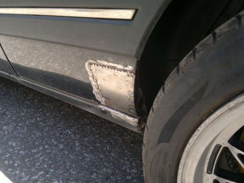 díra v lz blatníku, dírka pod nádobkou ostřikovačů a dírky v prahách po nýtech