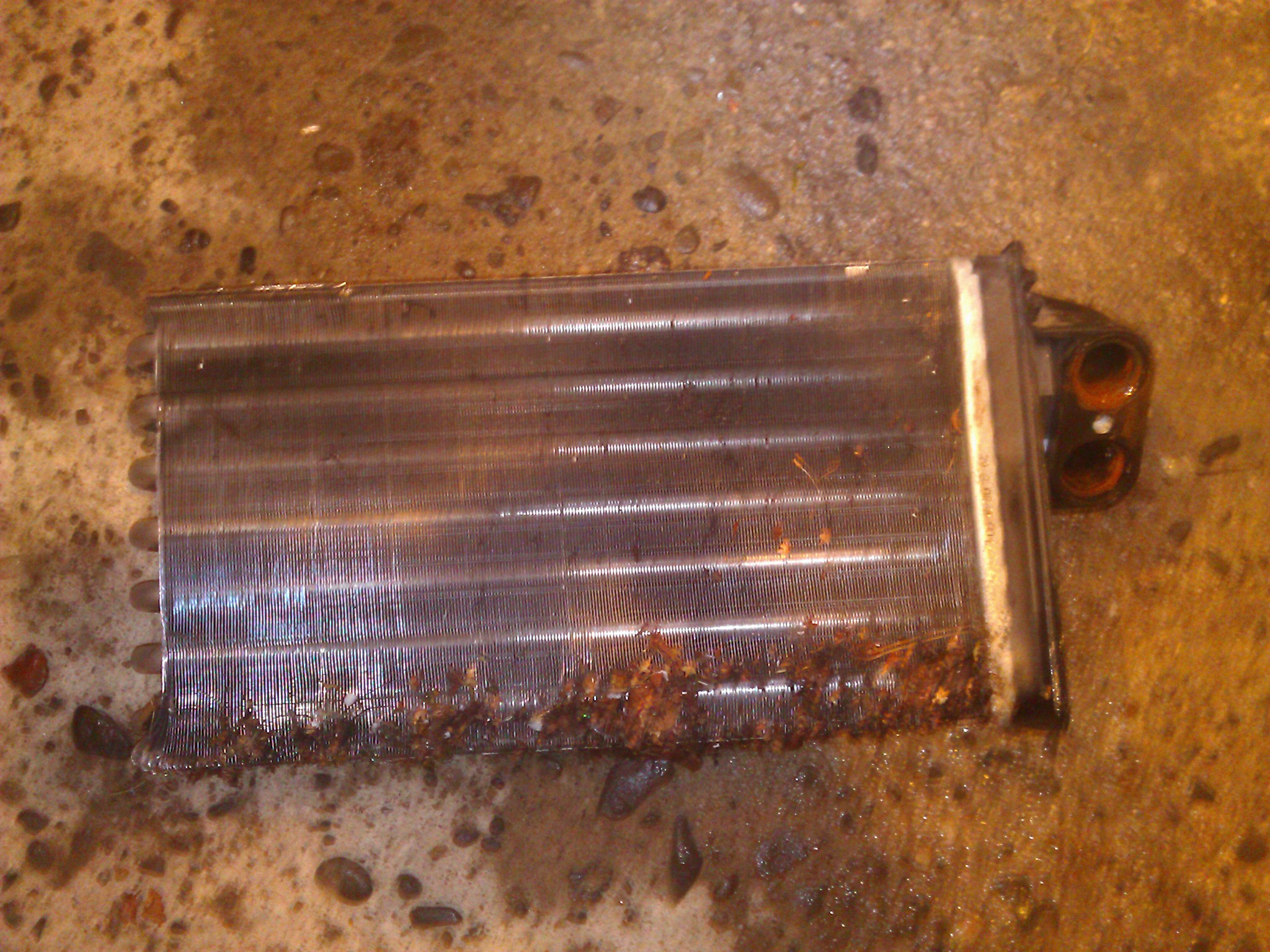 Závada: prasklý výměník topení. Odborné vedení opravy: pichy. Podrž-šroubek: já.