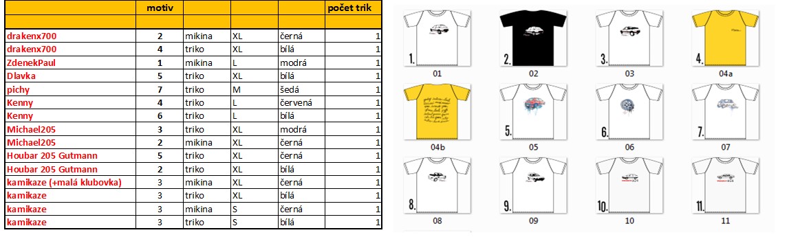 č.3- triko -XL - černé - 1ks, S - bilé 1ks