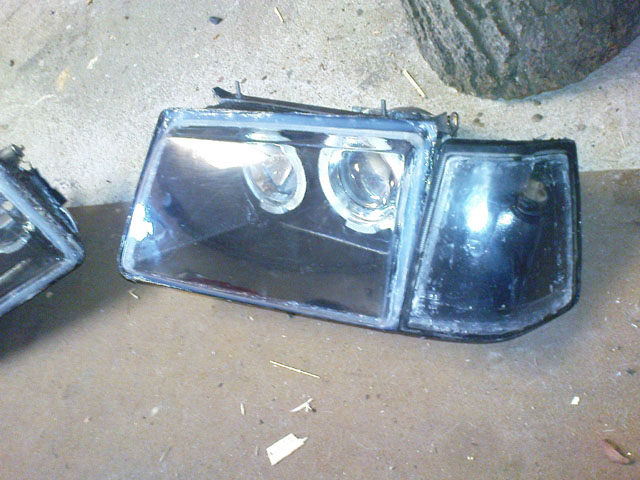 Tady už druhý den za světla,po zkrácení a připevnění k autu,ale pouze nahrubo nakitované
