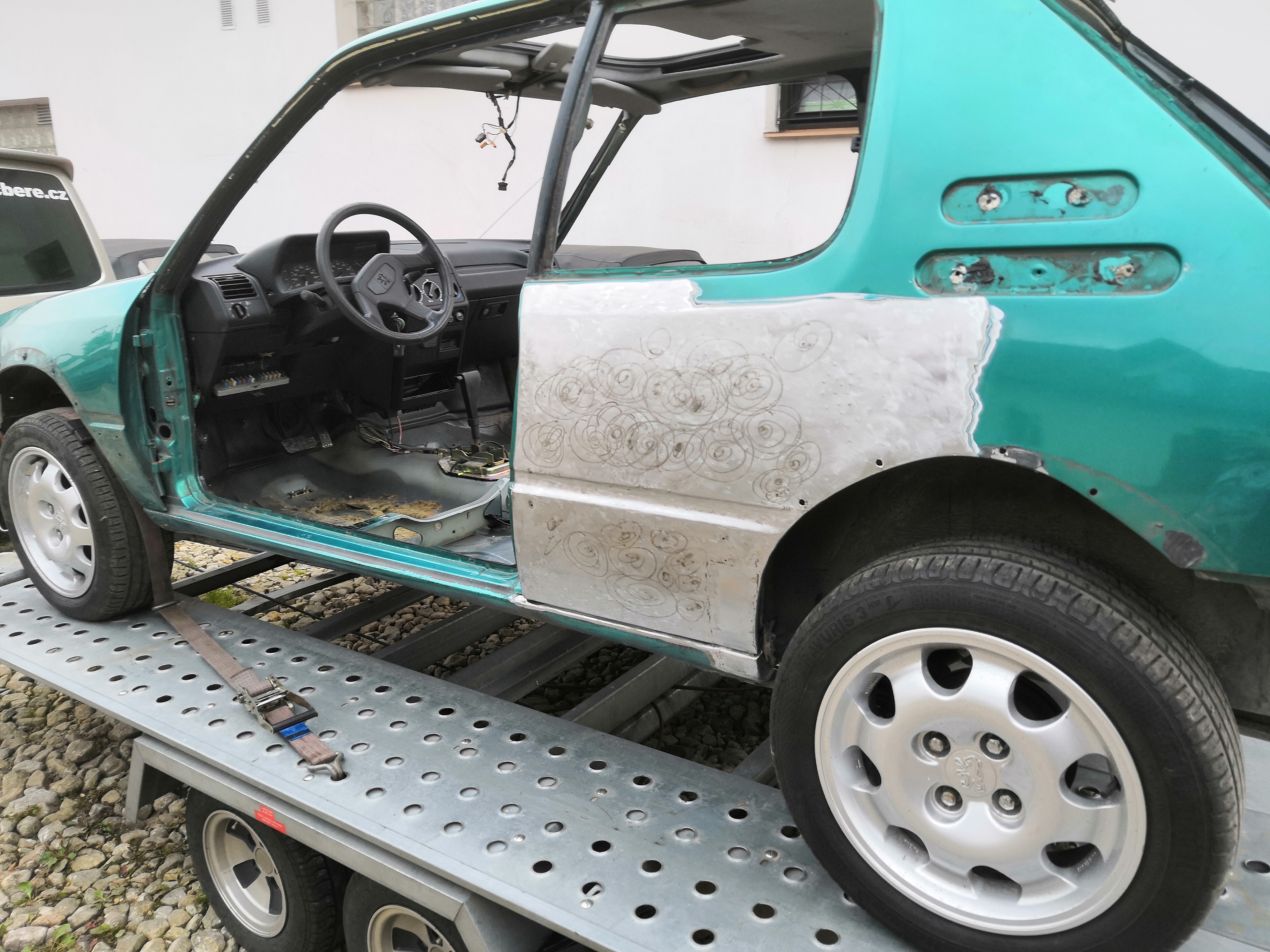Gentry po klempířské práci hotové a už stoji v lakovně odstrojene...