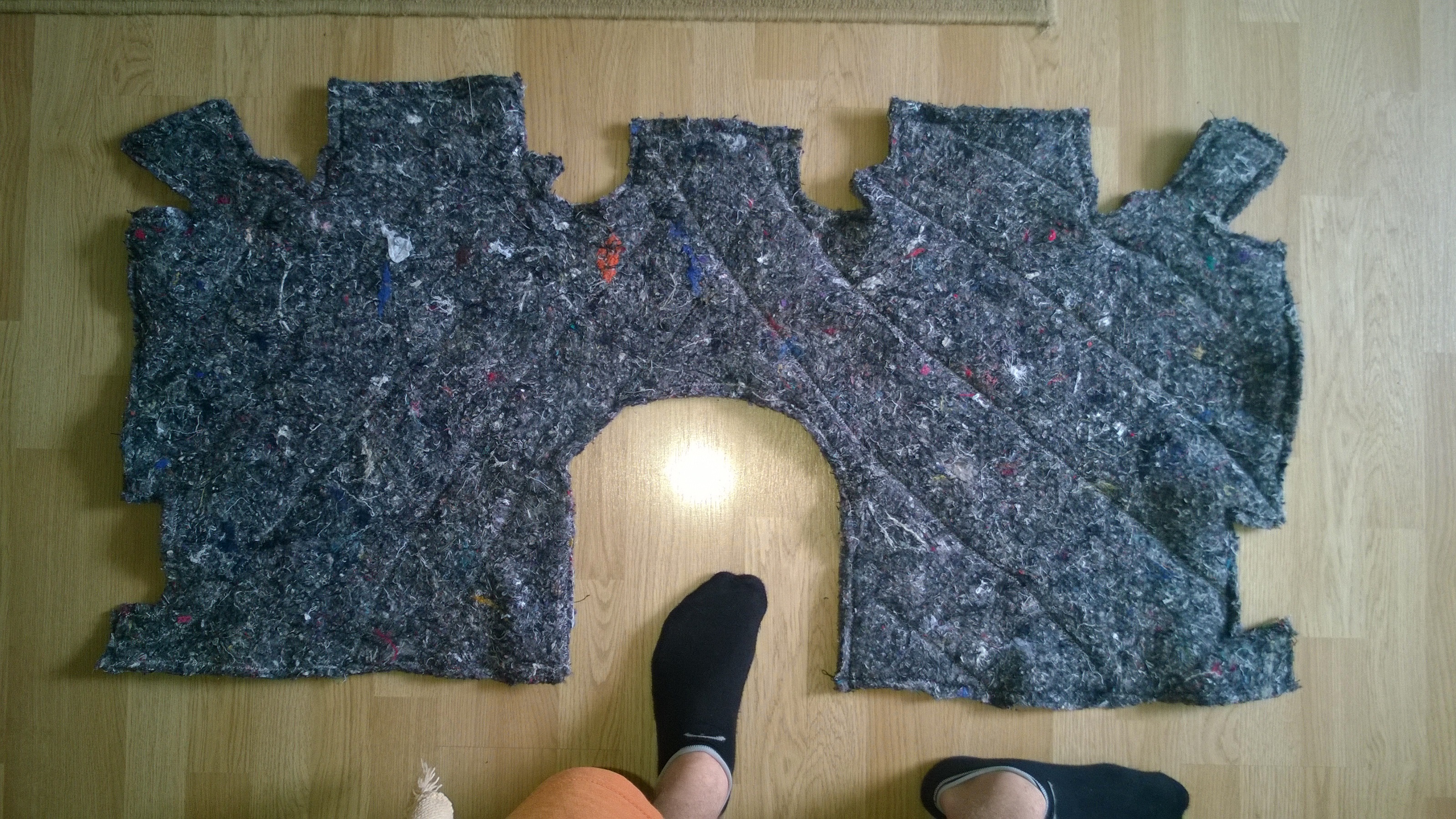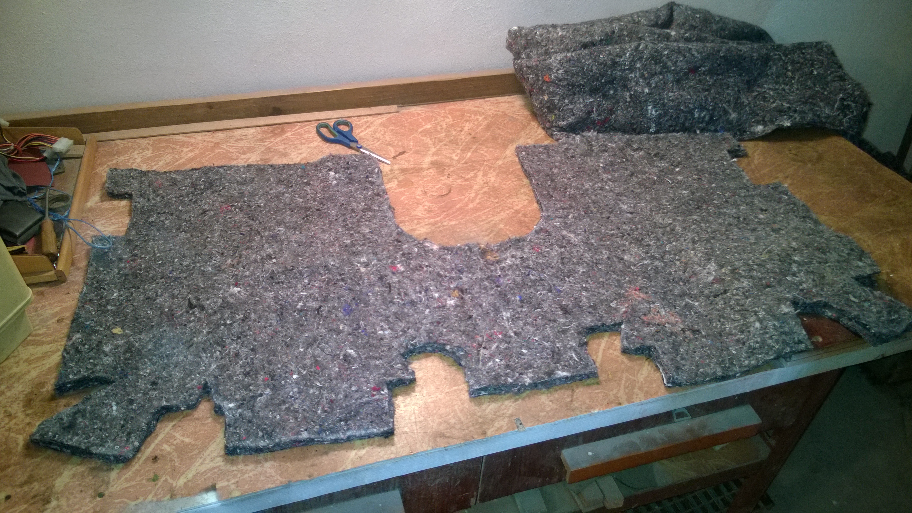 V týdnu jsem rozjel akci 4V. Vytáhnout, vysát, vydrhnout, vrátit. Myslím koberec. Loni nám to s pichym trvalo celé dopoledne, teď jsem to měl vytažené za hodinku :) Celý páteční večer jsem navíc strávil ve společnosti šicího stroje, kde jsem se snažil vyrobit náhradu za dost jetou tlumící hmotu pod kobercem. Musím se pochválit