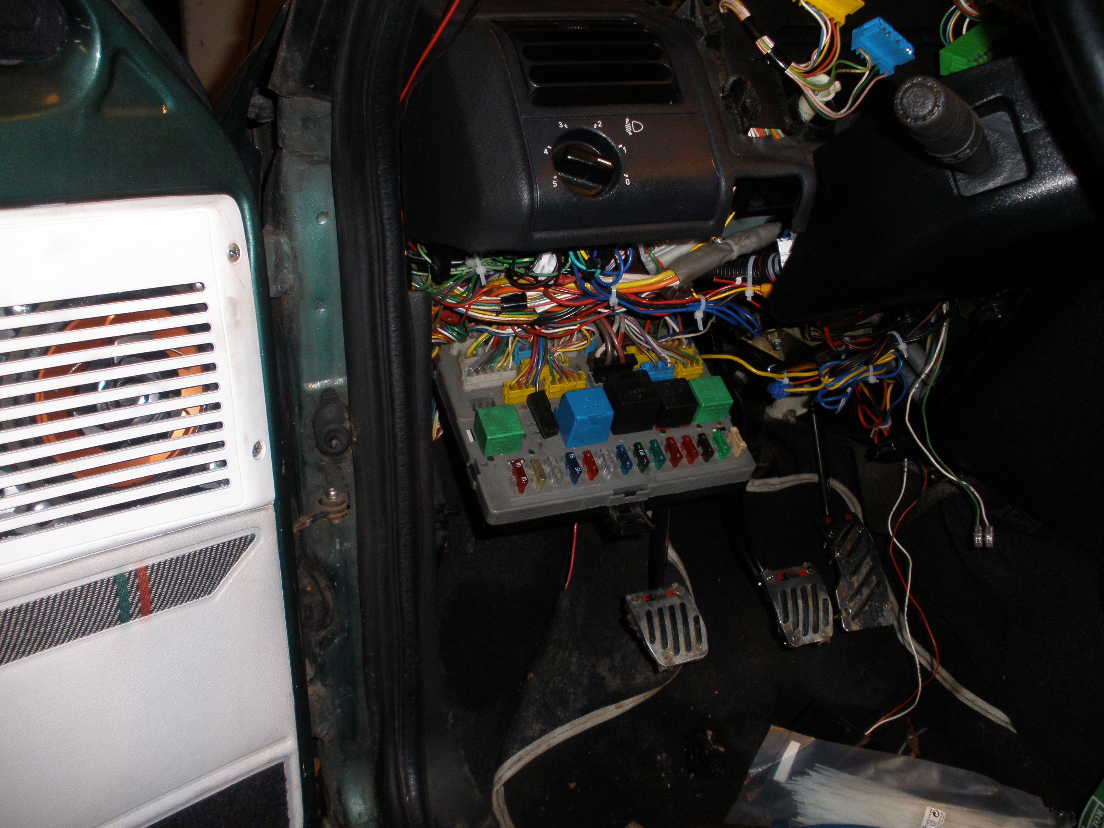 Dnes jsem měl chvíli času, tak jsem se do auta pustil. Konečně jsem dal dohromady elektriku, aby nedělala ostudu, takže vše jsem postahoval a konečně zavřu pojistkovku. Kabely, kterých tam bylo hromadu, a já nevěděl k čemu jsou jsem popsal a nalepil na ně nálepky... elektrika dle mých představ.