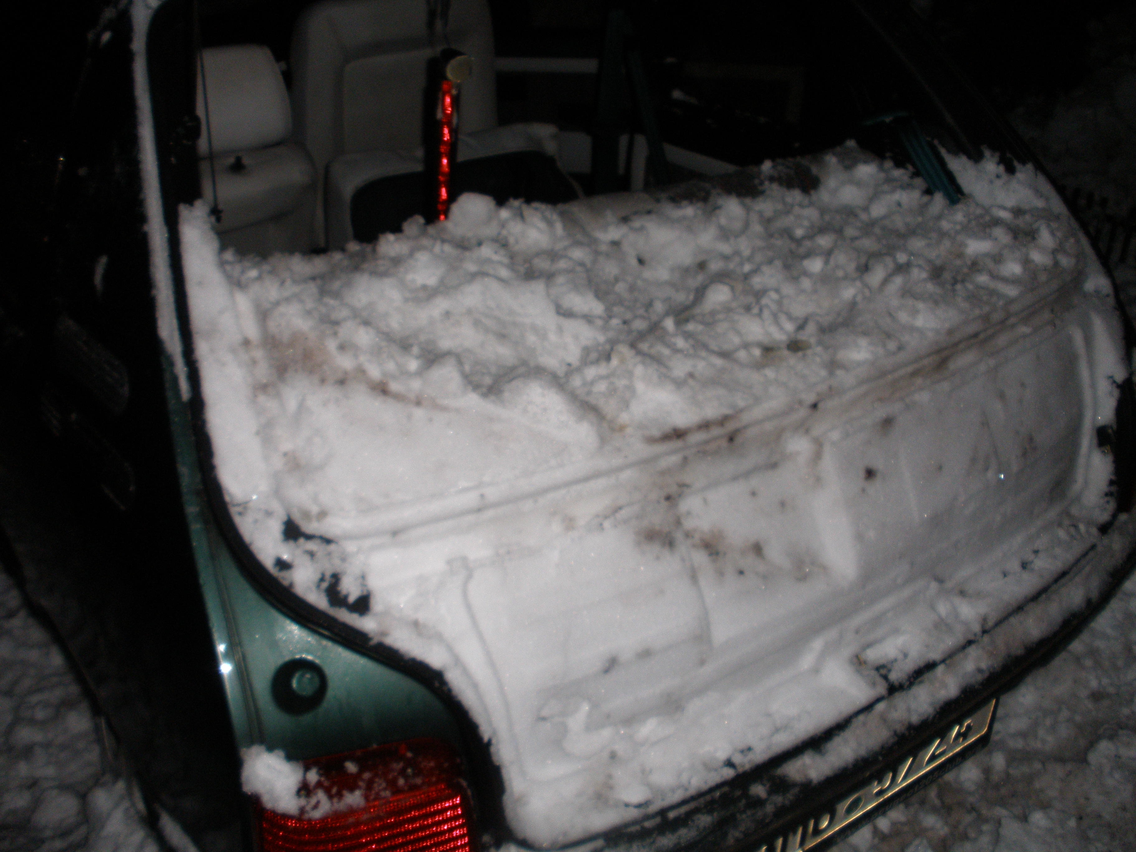 Tak dnes mě sníh trochu překvapil. Dojel jsem ze Zlína, vyhrabával asi 2 hodiny auto, pak sem se šel najíst a když jsem přišel, tak kufr plný a zadní sedačky plné sněhu a okno fuč. A to zrovna v čase, když jsem šel k autu a chtěl jsem ho přeparkovat jinam, aby mi snih na něj neflákl... pozdě...
