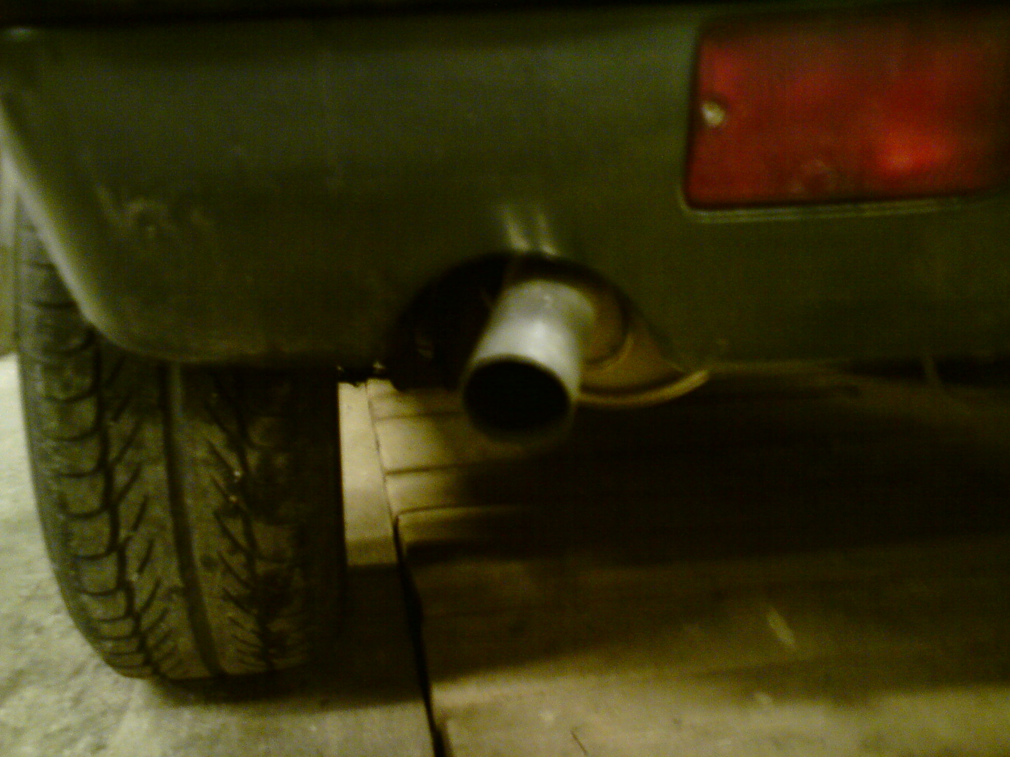 dnes som zistil ze by bolo na case vymenit olej, tak som sa do toho pustil. a kedze ma pekne žrala ta nechutne tenka trubka na konci vyfuku tak somju nahradil hrubsou,ktora vyzera podstatne lepsie.
