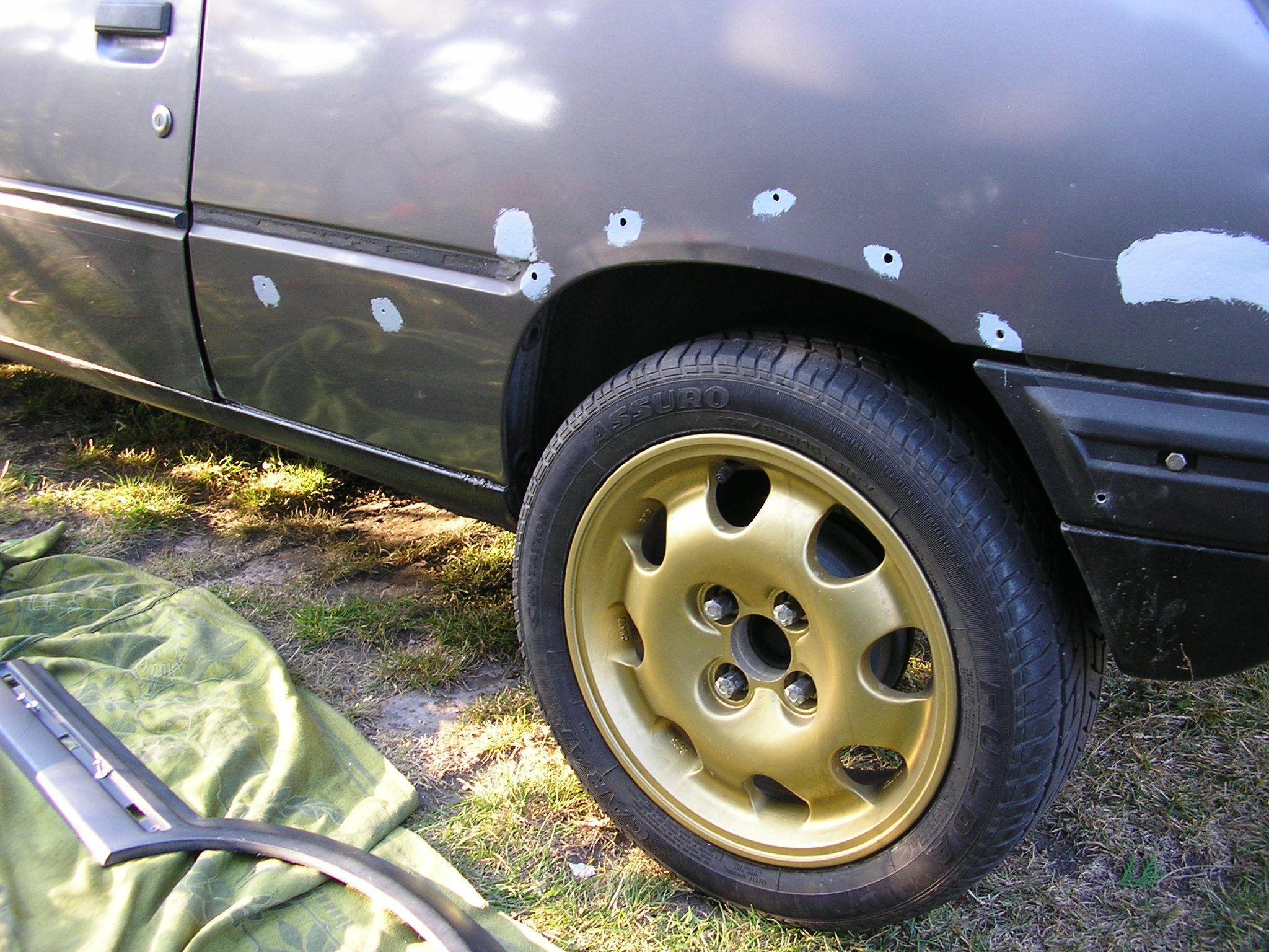 dneska sem dovezl 15ky kola speedline, sice jsou stříknutý zlatou ale skusím to s ní, bude to vypadat zajímavě, a pokud ne, tak tu barvu sundam zpět na hliník