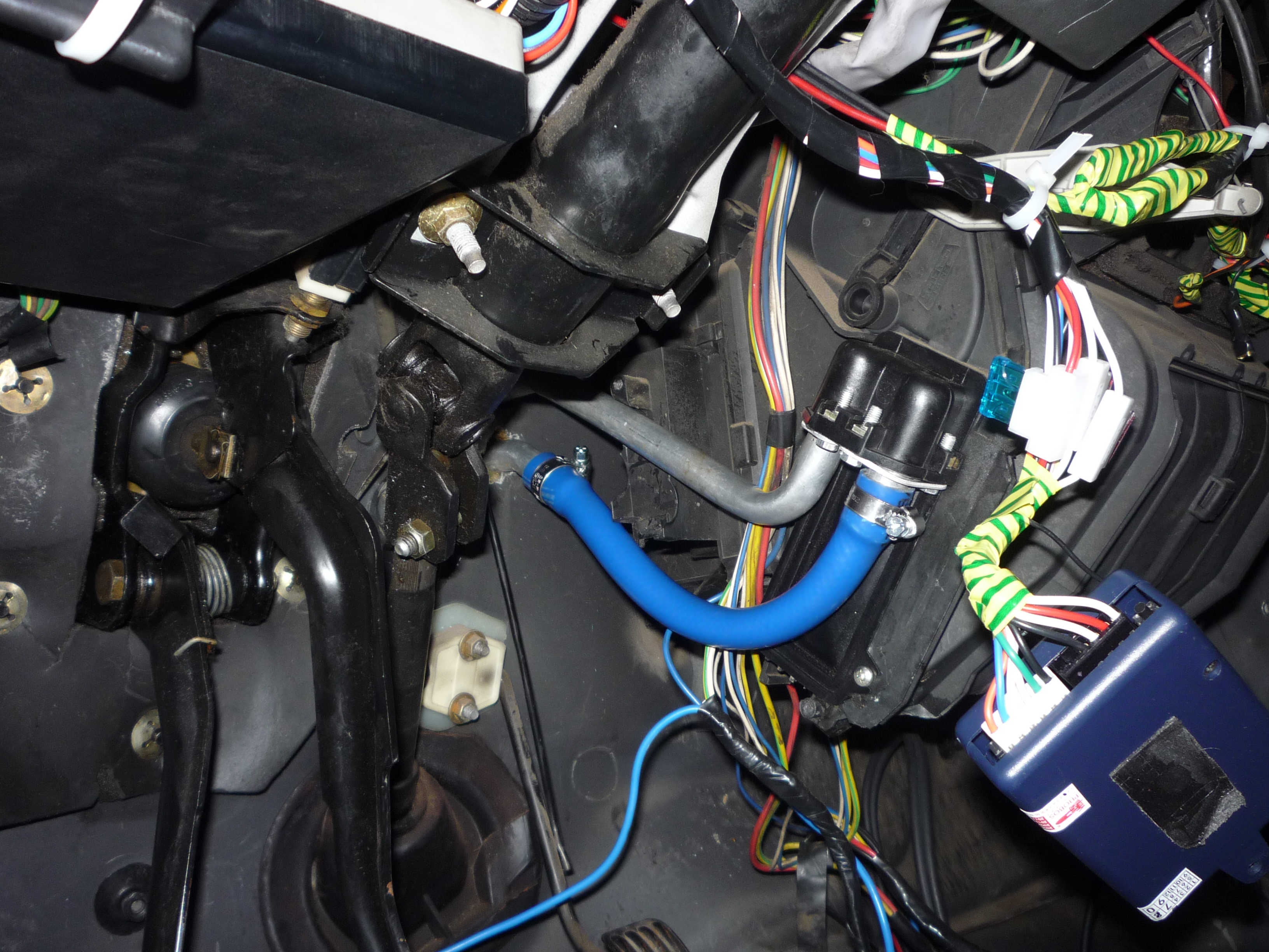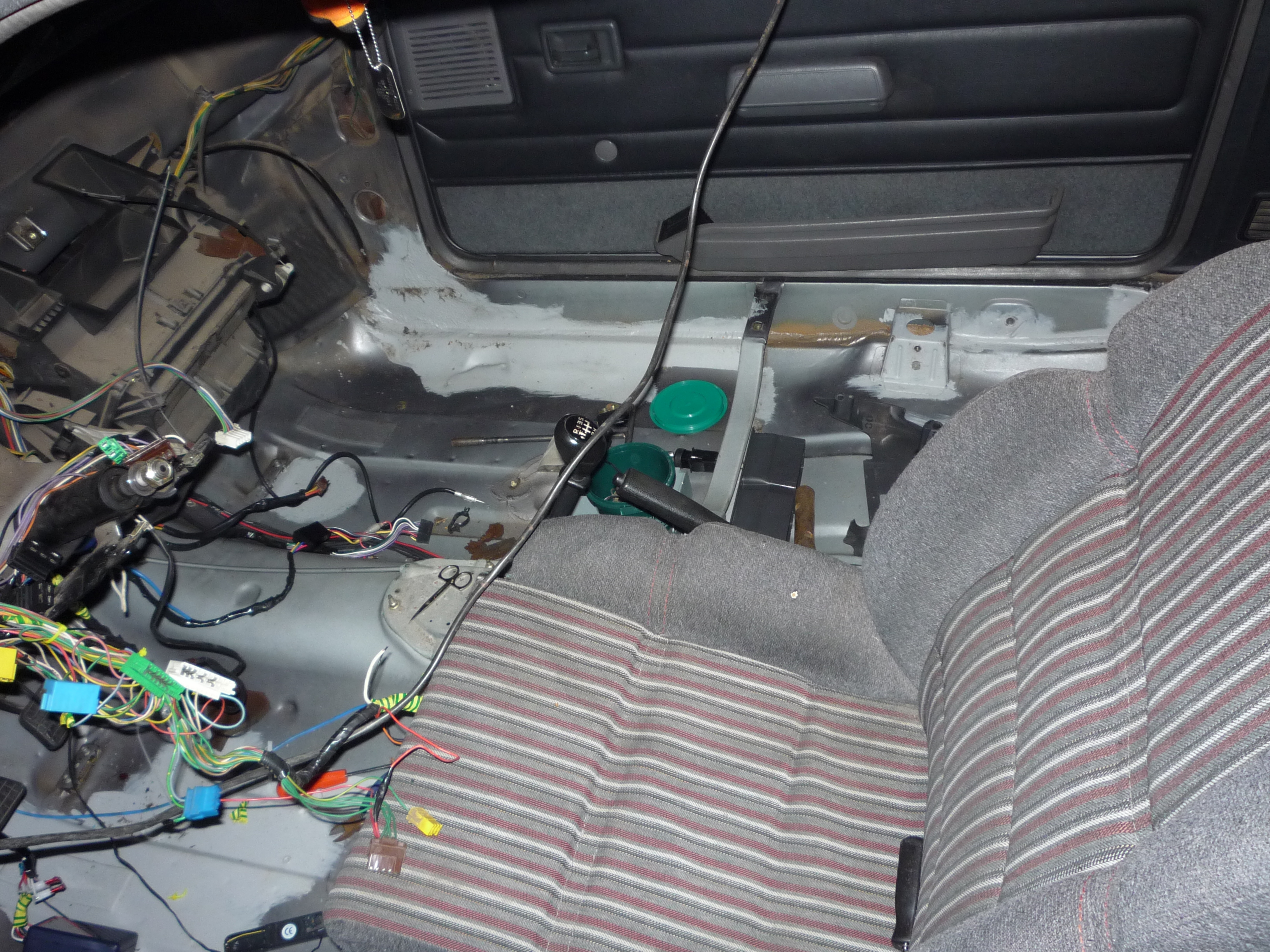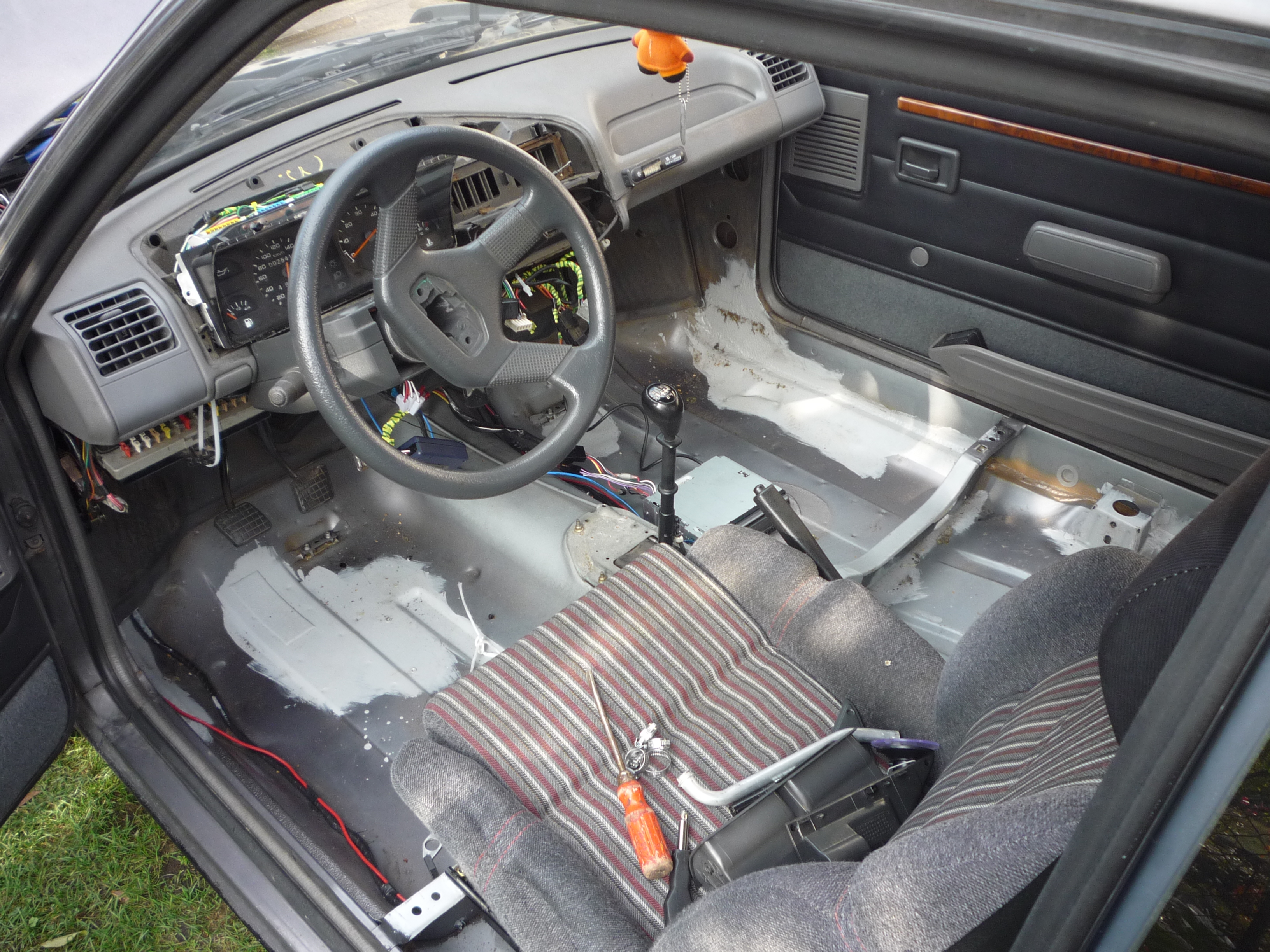 Opravy a vysušovací práce sou v plnym proudu. Ve škole jsme teď dostali na dva dny volno, takže času dost. Auto je rozebraný, koberec a odhlučnění se suší, topení je už vyměněný za nový. Jen s trubkama byl trochu problem, jelikož sem ty původní musel uříznout (za boha nešly povolit ty příruby), a ty nový nevim jestli nebyly do jinýho modelu, ale do diesela určitě ne. Takže vše vyřešila hadice jak je vidět na fotkách. Taky sem experimentoval s laminátem - snažil sem dodělat urvanej držák topení. Výsledek není nejhorší si myslim - nato že sem to ďál poprvý. Ještě to zejtra vybrousim do požadovanýho tvaru a palubka pude do auta. Takže zejtra bude probíhat broušení a chtěl bych už auto složit do "původního" stavu. A dokonce i to rádio propláchnutý fridexem už jede. Stačilo to celý vymejt lihem a pak sem vyměnit stabilizátor napětí v rádiu a už hraje.