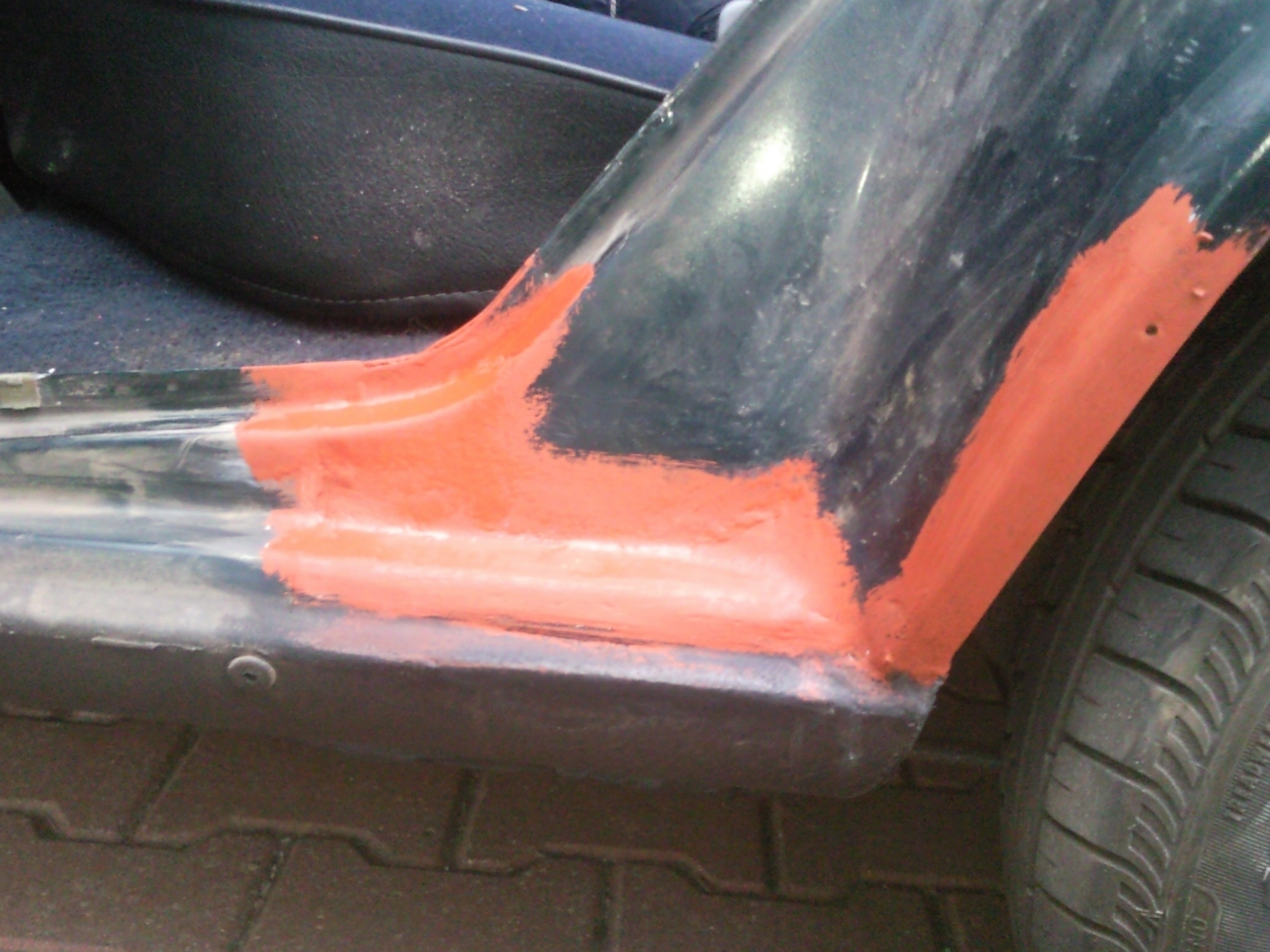 Dál jsem si sehnal nepolámaný práh na řidičovu stranu, který momentálně čeká v lakovně na přestříkání do barvy. Když už byl starý práh dole, tak jsem zarazil rozlízající se hnilobu u zadního levého kola mezi prahem a blatníkem a nechal jsem si práh auta nastříkat gumo-barvou (krapaticou). Jak se vrátí práh z lakovny tak pujde na auto, přesedlám na zimní gumy a budu doufat že auto uspěšně přežije další zimu :)