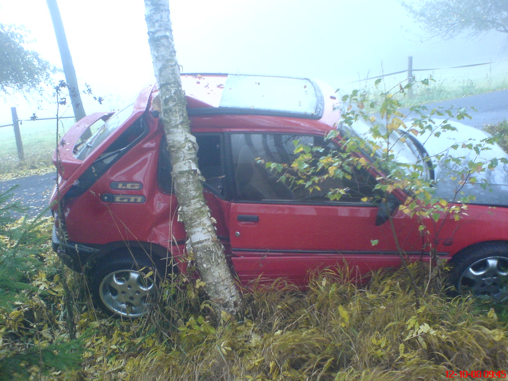 Tak rychlost nárazu byla podle posledních odhadů do 20km v hodině a jako papír je diskutabilní když já bral růžkem na celou plochu jeho boku. A musím se přiznat že navíc ten růžek jak někteří členové na clubu vědí ode mně byl docela dost napadený korozí a chtěl jsem ho tenhle rok vyvařit a zcela opravit (důsledek špatně opravené nehody někdy v minulosti u bývalých majitelů),ale k tomu jsem se už nedostal. Jinak auto krom toho že uniká kapalina chladící je zcela naprosto funkční.Motor vrčí a brzdy také plně fungují a neprošlápnul jsem je. A rozpěra mezi tlumiči také zafungovala a pohltila část nárazu a odklonila ho od interiéru a posádky. JInak já v Bedřichovi při nárazu ještě ohnul volant. A šel by opravit a srovnat ale do toho nepůjdu scháním tedy jiného. Ps. A hlavní že posádce se nic nestalo. A já rozhodně neměním že bych šel do jiného auta. 205tka je tedy plánována i v budoucnu