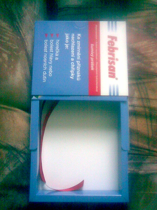 tak tady je ten náš zazrak jmenem krabičky dostaneme čistý papír takže polepit páskou naohýbat a začít skládat no posudte sami jestli to je dobrý job jak tady někdo nejmenovaný napsal a nakonec se zatahne za stuhu a krabička se otevře